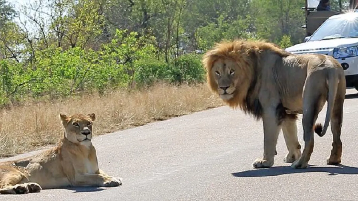 ونشر موقع محمية "كروغر" الوطنية الطبيعية، مقطع فيديو للأسد وهو يهجم على سيارتين للسياح، بعد أن صدته اللبؤة ومنعته من الاقتراب منها.