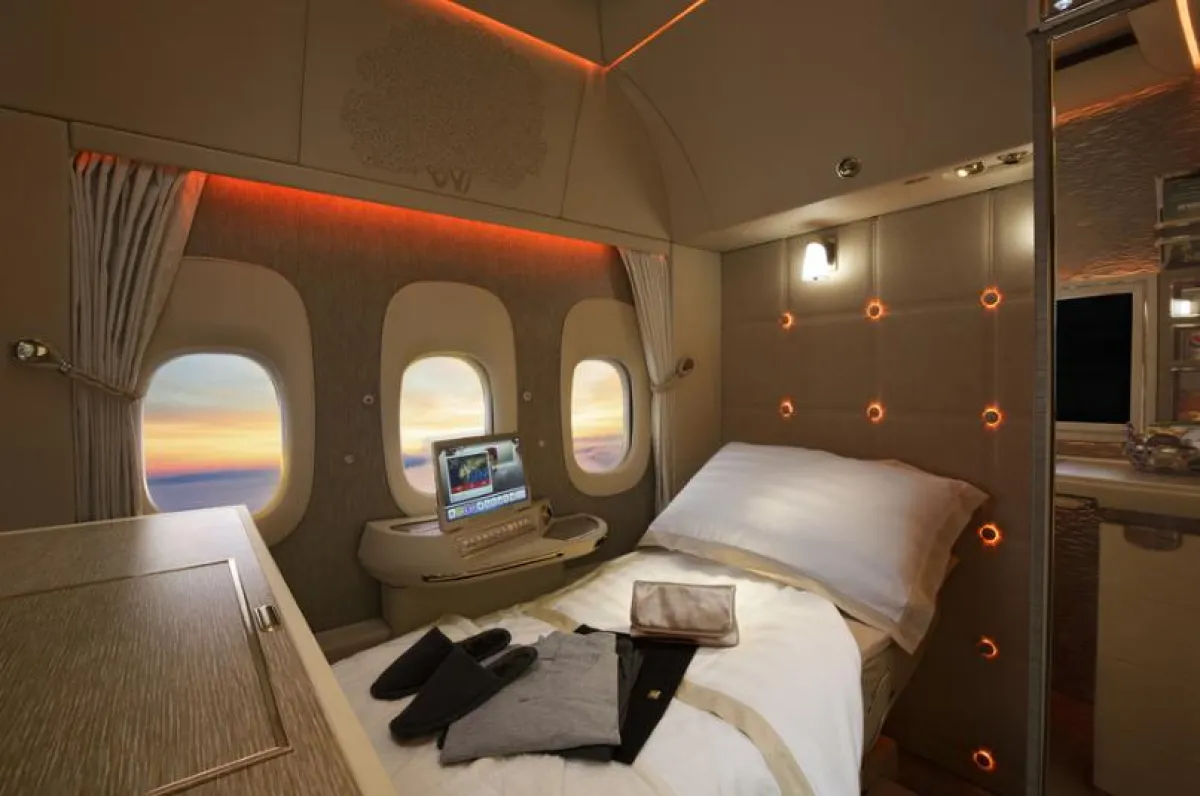 وتتميز الأجنحة الخاصة على متن طائرة طيران الإمارات، بوجود كرسي خاص بميزة "انعدام الجاذبية"، وجهاز تلفاز بشاشة رقمية قياس 32 بوصة وخزانة، بالإضافة إلى مجموعة خاصة من مناظير Steiner safari. وسيكون هناك 3 أجنحة خاصة في المقصورة، مع وجود نافذة افتراضية لركاب الصف الأوسط لعرض مشاهد من الخارج في الوقت الحقيقي.