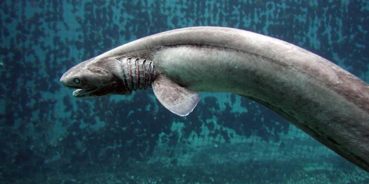 وتشبه بجسمها ثعبانًا طويلاً، وتمتلك فكاً دائرياً يحتوي على 300 سن، وتنتمي إلى مجموعات "أسماك القرش ذات الخياشيم الإضافية والأفواه الكبيرة، ولها أعين على جانب رؤوسها، وزعانف على ظهرها اللامع".