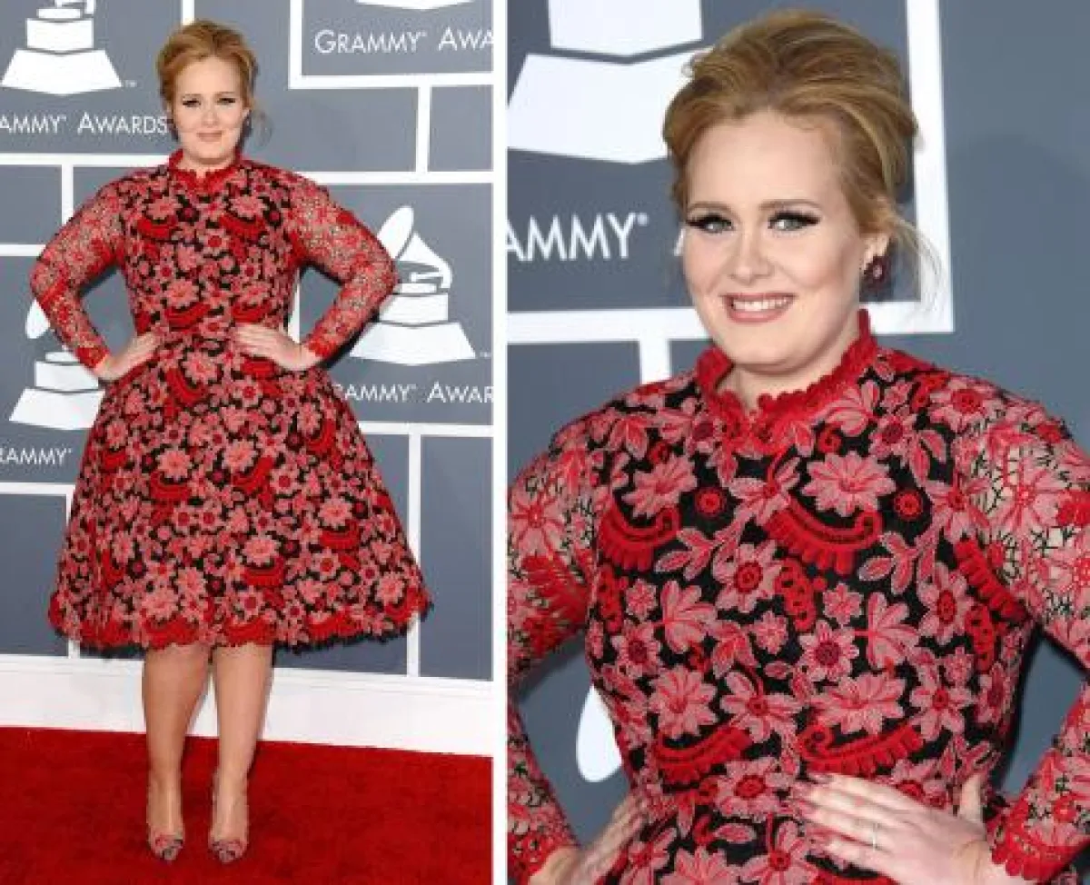ولكن المفاجأة الجميلة على سجادة الغرامي الحمراء هي خروج النجمة آديل من دائرة اللون الأسود, إذ ارتدت فستاناً مورّداً من "فالنتينو" Valentino, علينا أن نعترف أنّ هذا الاختيار لم يكن مناسباً لها إلا أنّ اختيارها للألوان أسعدنا كثيراً.