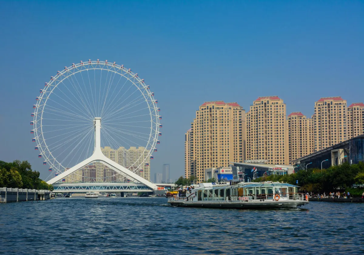 هي الدوّامة الوحيدة في العالم المبنيَّة فوق جسر، وتتمركز كما يدلُّ اسمها في مدينة "تيانجين"، شمال الصين. ترتفع الدوّامة لـ120 مترًا، فوق جسر "يونغل" (كان يُسمَّى جسر "تشيهاي" سابقًا)، على نهر "هاي". وكانت افتُتحت للجمهور في 7 أبريل/ نيسان 2008، وهي تضمُّ48 مقصورة، كلٌّ منها قادرة على استيعاب ثمانية ركَّاب، وتستغرق الرحلة فيها 30 دقيقة.