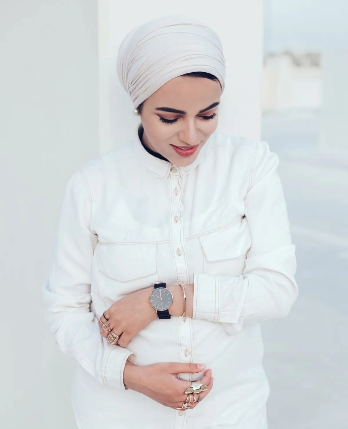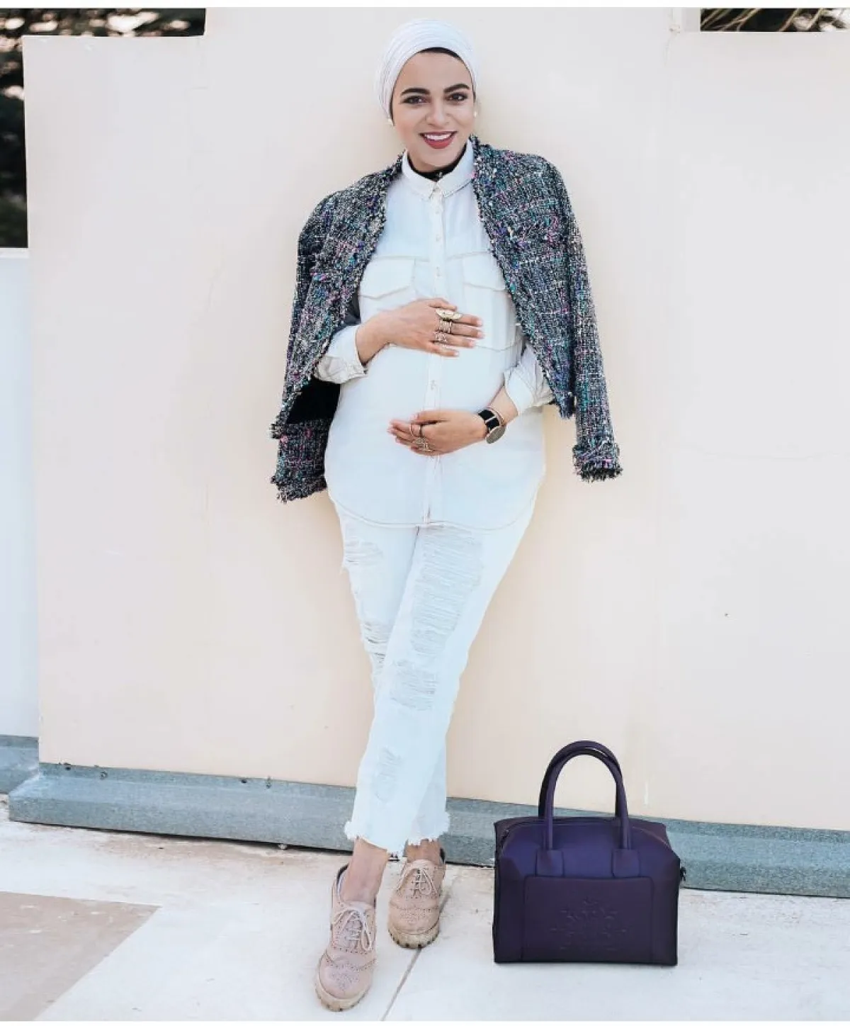 تابعن الصور ولاحظن اطلالات الفاشينيستا سحر فؤاد المناسبة للمرأة المحجبة الحامل.