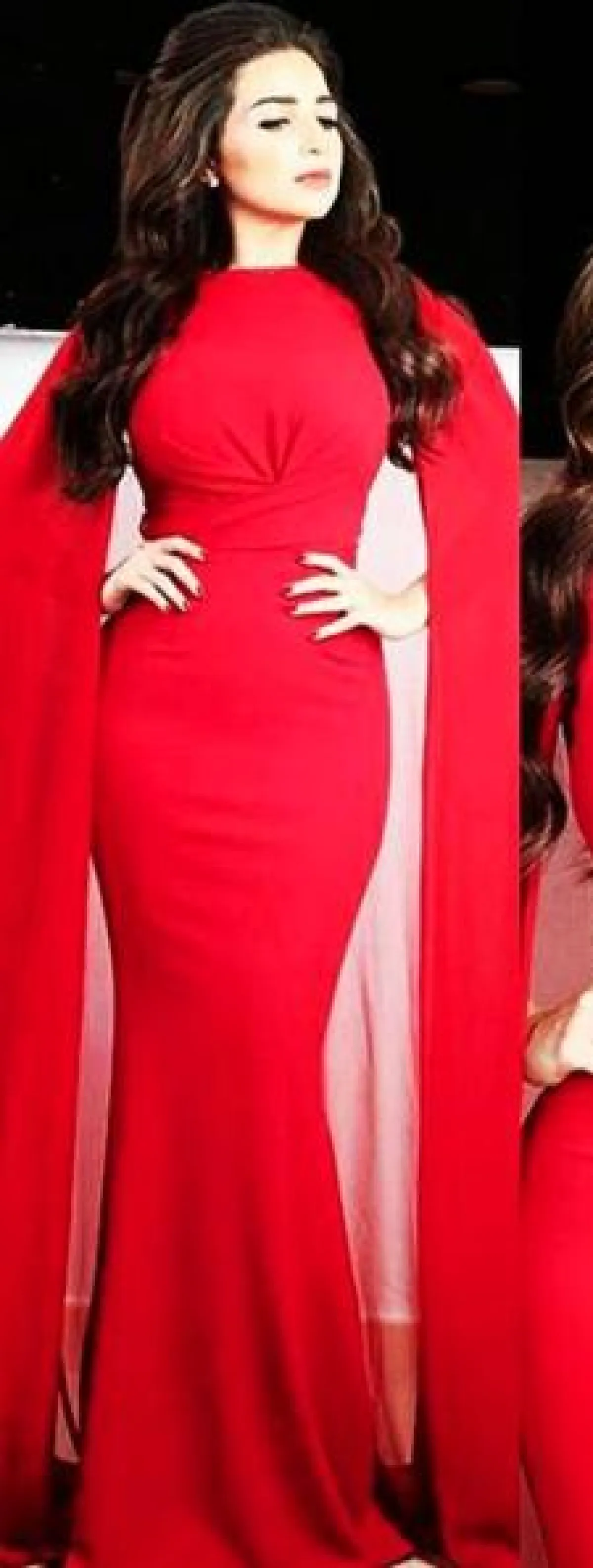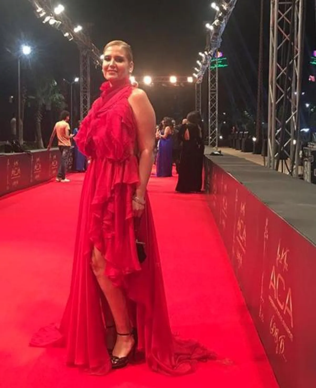 هنا شيحا في فستان باللون الأحمر على السجادة الحمراء