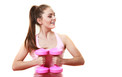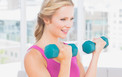 | ضعي الوزن (3 كيلوغرامات أو أكثر) في كلِّ قبضة يد، مع مدِّ ذراعيك للأعلى فوق صدرك، بحيث تصبح راحتا يديك في مواجهة السقف. ولا بدَّ من أن يكون الإبهام في كلِّ يد في مواجهة الآخر.