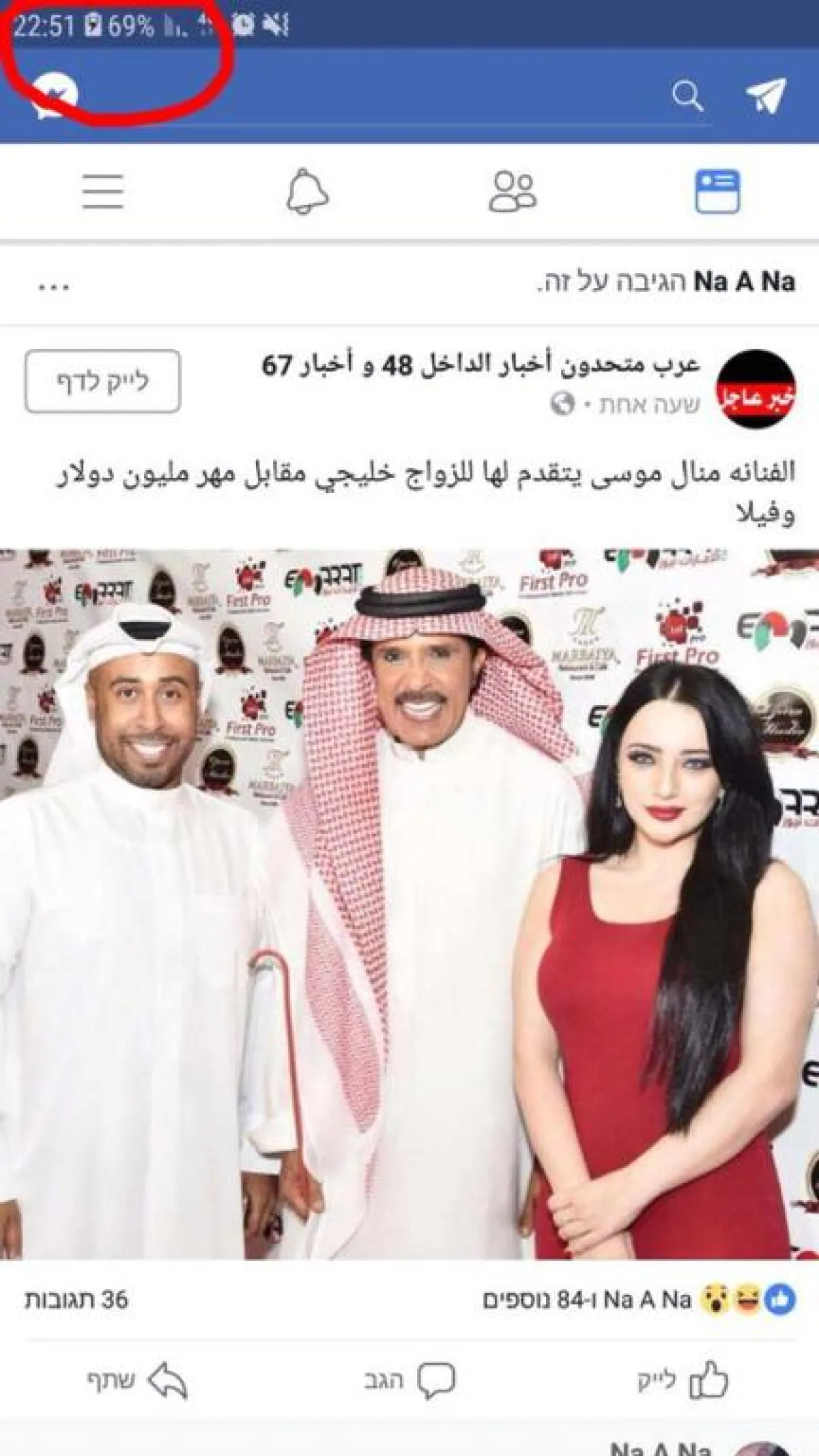 منال التي نشرت صورة عن الخبر عبر حسابها على موقع "فايسبوك"، علّقت عليه بـ "بوست" توقفت خلاله عند عدد من الأمور، من بينها أنه وصلها 500 رسالة عن هذا الخبر ولكنّ مصدرها واحد، وأنّ الفاعل يقوم بتصويره ويعيد إرساله إليها، وذلك يبدو واضحًا من خلال بطارية التلفون وتوقيت تصوير الخبر.