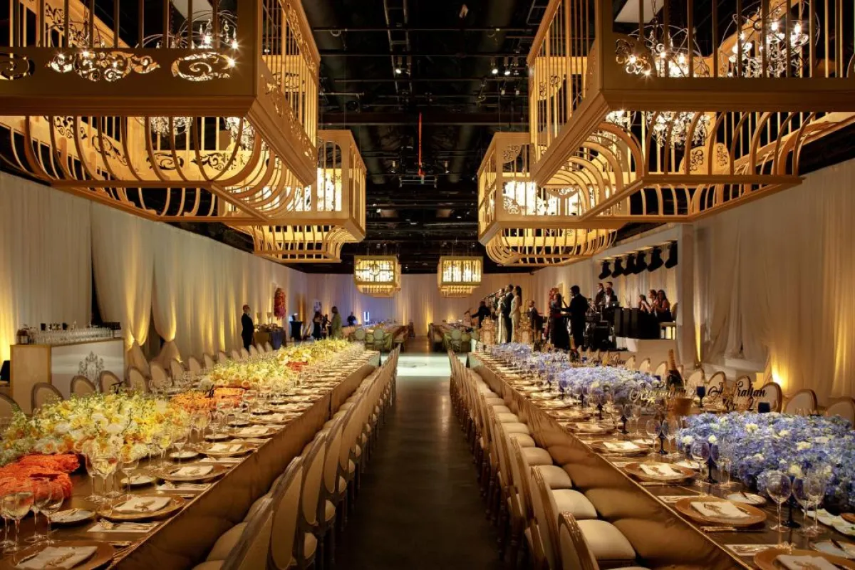 واختار الزوجان لأجواء حفلهما قصة "الجميلة والوحش"، وتم إغلاق كامل المنطقة المحيطة بمركز الفن المعاصر الذي أقيم فيه حفل الزواج.