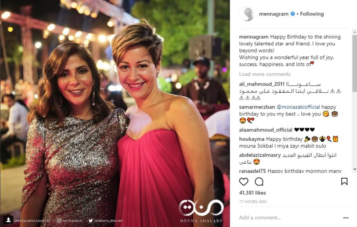 منة نشرت صورة خاصة تجمعها بمنى وعلّقت عليها قائلة: عيد ميلاد سعيد إلى النجم الساطع الجميل الموهوب وصديقتي.. أنا أحبك وأتمنى لك عاماً رائعاً مليئاً بالفرح والنجاح والسعادة والحب، وتضامن معها 41 ألف متابع بإرسال برقيات التهنئة للفنانة منى زكي.