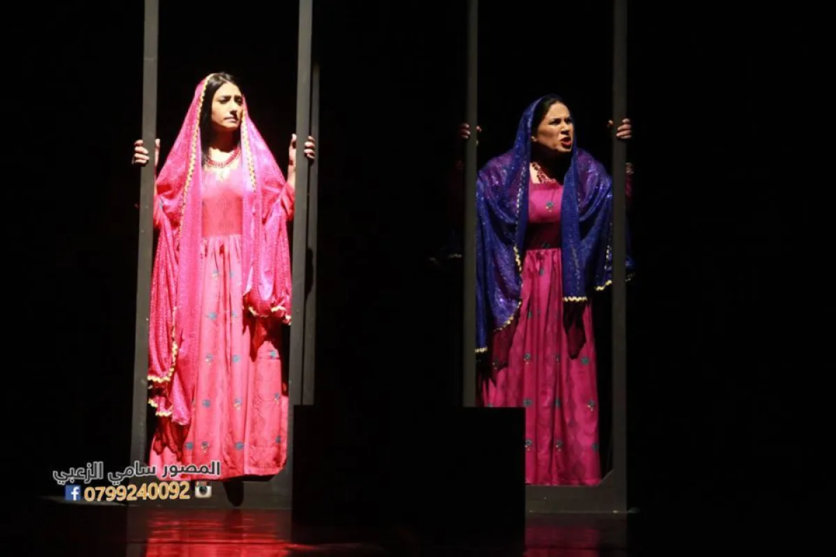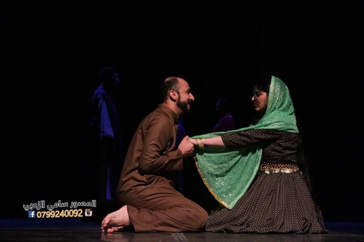 من الممكن أن نقسم العمل إلى جزئين رئيسين، الأول علاقة "جواهر" بـ"غانم"، الآخر علاقتها بوالده "حمود الغانم"، حيث كان الأول الذي أخذ وقتاً طويلاً من عمر العرض، عبارة عن حوارات ثنائية بين الشخصيتين، تمثلت بحالات "التوسل" لغانم الابن حتى ترضى وتصفح عنه جواهر، وفي هذا الجزء استمر الإيقاع ذاته والحالة الدرامية ذاتها، حتى على مستوى انفعالات الممثلين، بين توسل ورجاء، وصدود وابتعاد، فكان العمل فقيراً بالتنقل بين الحالات الدرامية التي من الممكن أن تصنع روح العرض من جهة، ومن جهة أخرى قلة الفعل المسرحي للعمل بشكل عام، بالإضافة إلى عدم منح أي فرصة للسينوغرافيا عامة بأن تكون جزءاً من العرض، حيث اكتفى بعدة أوامر إضاءة قليلة معظمها كان إضاءة شبه عامة، الأمر الذي كان سبباً بدخول الملل إلى الحضور جراء كل ما سبق.