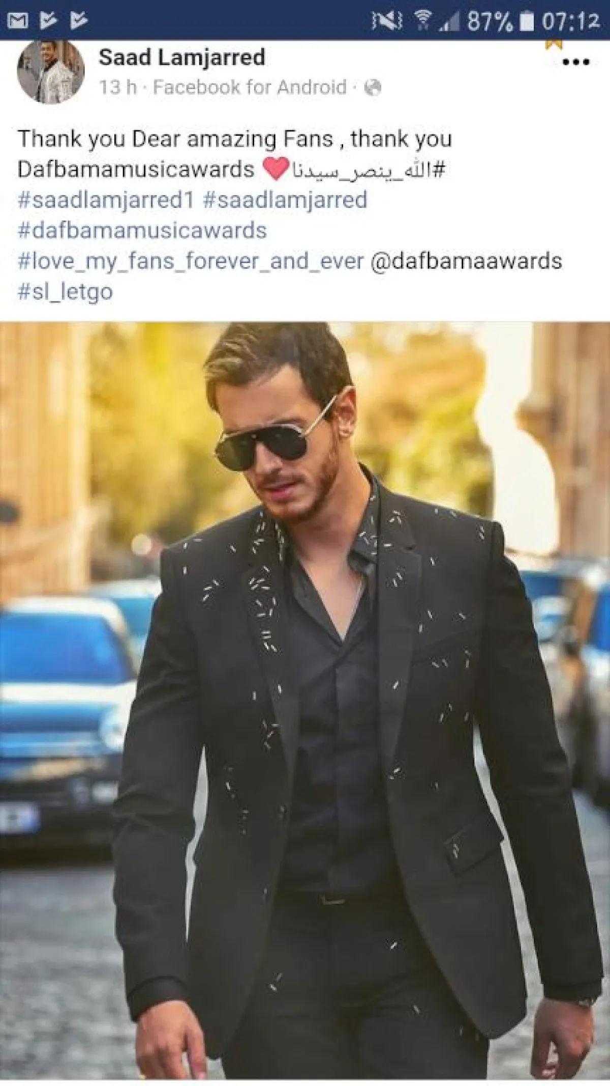 وفي نفس السياق وجّه الفنان المغربي سعد المجرد رسالة شكر لجمهوره ولإدارة " Daf Bama Music Awards "، عبر حسابه الرسمي على موقع التواصل الإجتماعي " إنستقرام " والفايسبوك، كتب فيها: " شكراً لكم كثيراً جمهوري العزيز، وشكراً " Daf Bama Music Awards ".