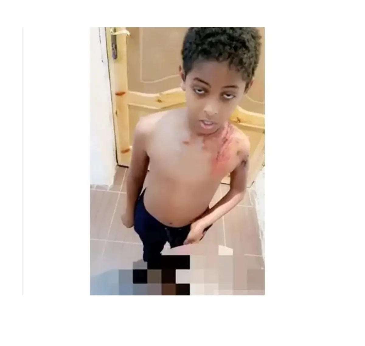 وتداول رواد مواقع التواصل الاجتماعي مقطعَ فيديو مصوراً، قام الطفل المعتدى عليه بتصويره، يقول فيه: "أناشد المسؤولين أخذ حقي من الطفلين اللذين قاما بحرقي وتشويهي. أنا الآن لا أستطيع الخروج من البيت، لأنني أخشى أن يقوما بذلك مرة أخرى".