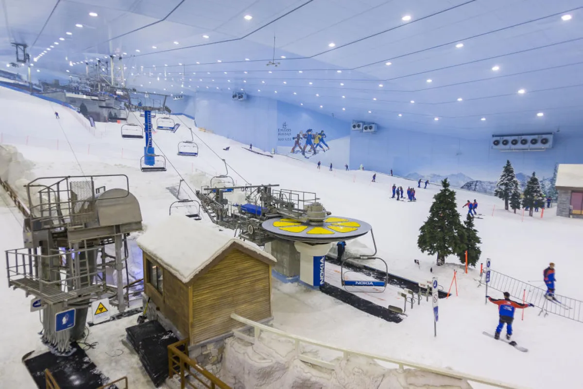 | ممارسة الرياضات الشتوية في حلبة "دبي" للتزحلق، المعروفة باسم "سكي دبي"، وتتمركز في الطبقة السُفليَّة من "دبي مول". وتستقبل الحلبة ذات المقاس الأولمبي 2000 ضيف، وهي تشكّل وجهة عائليَّة بامتياز، وتتصل بها مجموعة من المقاهي. وتوفِّر خمسة مسارات للتزلُّج متفاوتة الصعوبة والارتفاع والانحدار، كما تحوي على "حديقة الثلج" التفاعليَّة المُمتدَّة على مساحة 3.000 متر مربع، ما يجعلها أكبر حديقة للثلج في الأماكن المغلقة في العالم.