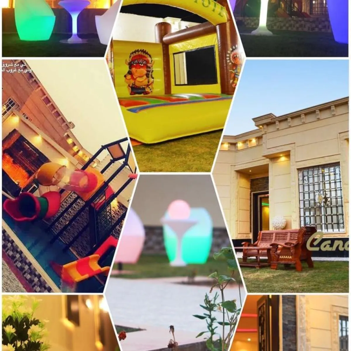 الرياض، حي القيروان، 4 شاليهات بتصاميم مختلفة "مودرن، كلاسيكي، مغربي، ألعاب مائية". يوجد فيها "دانس" أرضي ثلاثي الأبعاد 3D، وتتوفر كذلك خيمة شتوية، و"جاكوزي".