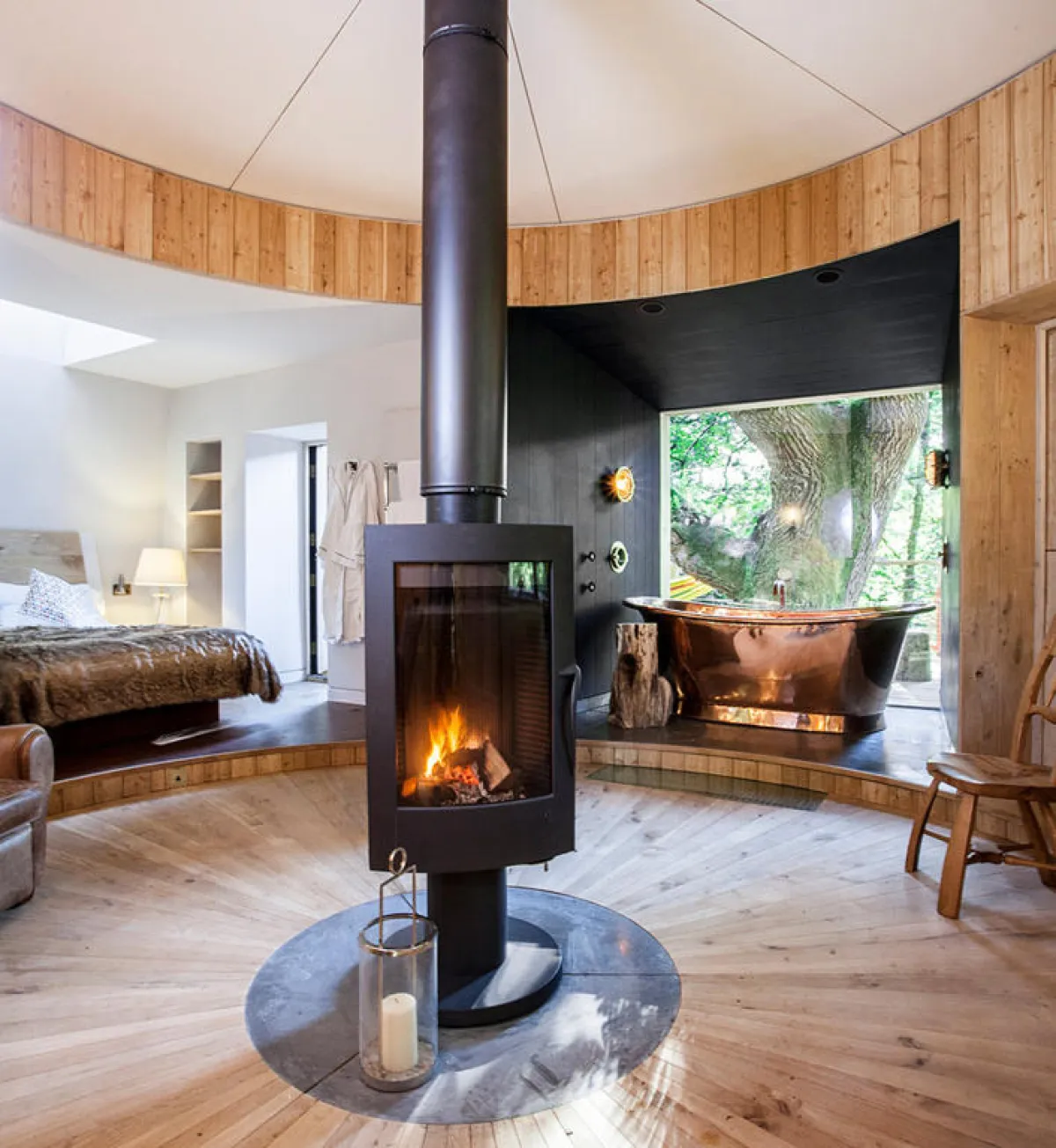 بأجواء من الطبيعة الساحرة، دخل منزل مصنوع من الأخشاب في قلب شجرة يبلغ عمرها مئات السنين قائمة العقارات الأفخم والأغلى والأشهر في بريطانيا؛ بسبب درجة الإتقان التي تم تشييده بها، إضافة إلى كونه في قلب الطبيعة الخضراء بعيداً عن ضوضاء المدن وضجيج الأسواق.