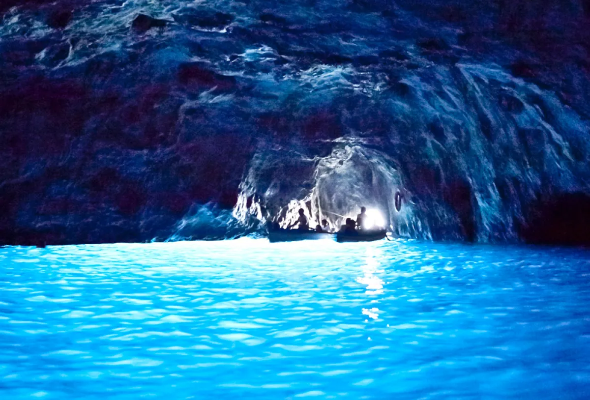 الكهف الأزرق في إيطاليا، أو مغارة "أزارو"، تعد مصدر الجذب السياحي الأكبر في "كابري" بإيطاليا، وهي عبارة عن كهف نصف مغمور بالمياه مضاء بضوء أزرق غريب، ويقال: إن الكهف مأوى للشياطين والحوريات وغرباء الأطوار. يصل طوله إلى 50 متراً تقريباً، وعرضه إلى 30 متراً، أما مدخل الكهف فيتكوَّن من فتحة مربعة الشكل، تبلغ مترين في الجدار الصخري، أما الجزء الداخلي من الكهف، والمعروف باسم الدومو "الكاتدرائية"، فيبلغ ارتفاعه حوالي 144 متراً، ويصل عمق المياه تحته إلى 133 متراً.