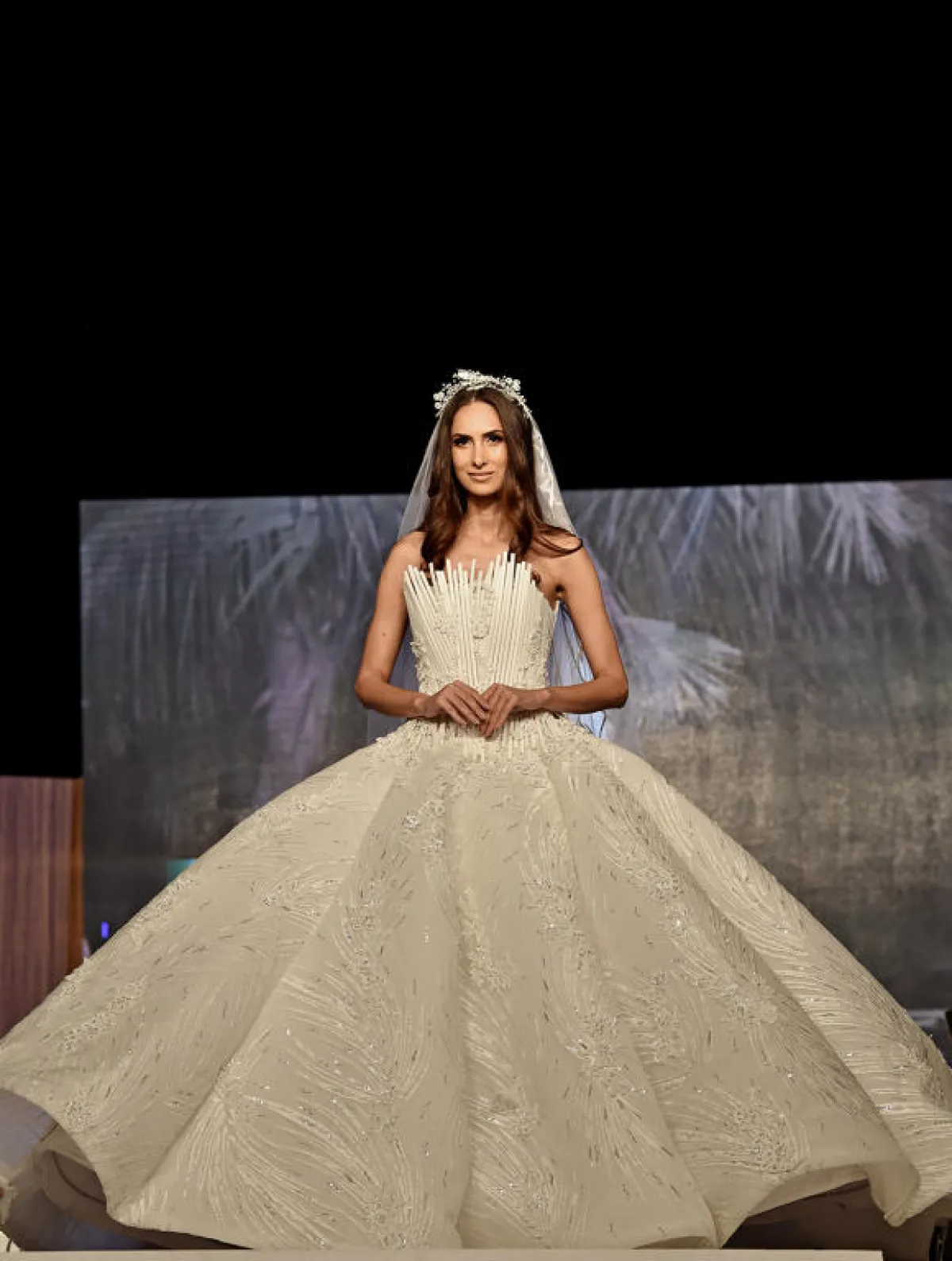 وكعادته؛ استخدم عطاالله أفخم الخامات المطرزة يدوياً بقطع من اللؤلؤ والشوارفسكي ذات الألوان الغنية والتي تتماشى مع تصميم كل قطعة، حيث تميزت مجموعة شتاء 2018 بتنوع ألوانها والتي غلب عليها الألوان الفاتحة كالأخضر، الزهري، البيج، الأزرق الغامق، والأزرق الفاتح وغيرها من الألوان التي أضفت بريقاً خاصاً لكل تصميم، ليظهر فستان ختام عرض الأزياء والذي تعالت فور ظهوره الهتافات وعبارات الإعجاب، ليفوق هذا التصميم كل التوقعات، ويحقق حلم كل عروس بالكمال في ليلة العمر، حيث اختتم الحفل بتكريم مصمم الأزياء العالمي وليد عطاالله للشركات الراعية مع التقاط صور السيلفي مع الحضور من الفنانين والمشاهير.