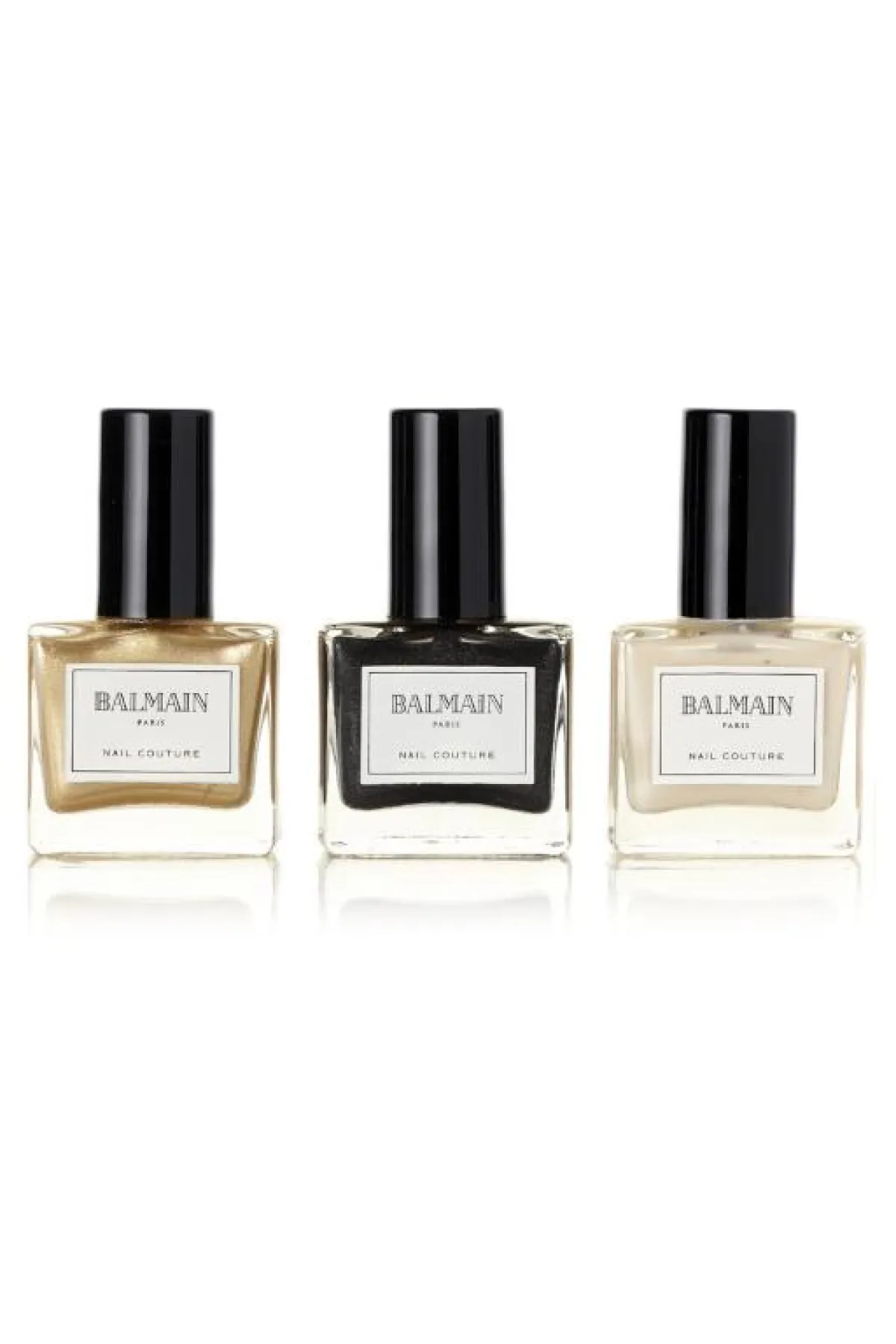 3. Balmain Paris Hair Couture Nail Couture Gift Set: تتألف مجموعة بالمان هذه من ثلاثة ألوان متلألئة وأنيقة من المناكير، هي: الذهبي اللامع، الأسود المعدني، والعاجي، وهي مثالية لمختلف أنواع الملابس، كما أنها تجفّ بسرعة.