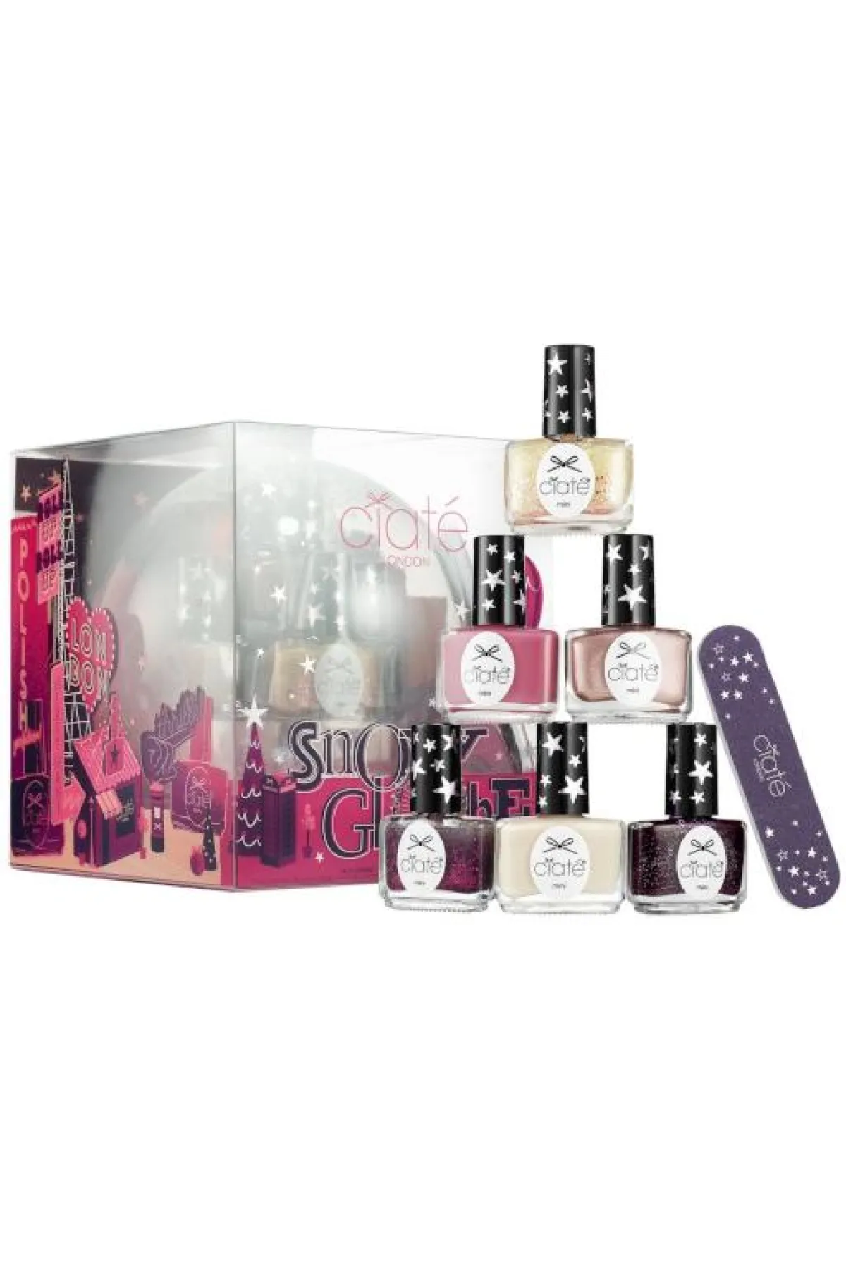 1. CIATÉ LONDON Snow Globe Collective: Nail Polish Set: هي مجموعة من المناكير بحجم صغير، مؤلفة من 6 ألوان رائعة، ثلاثة منها كلاسيكية، و3 أخرى جديدة ملائمة لموسم العطلات خلال الشتاء، ومعبأة في علبة أنيقة، ومرفقة بمبرد صغير للأظافر كهدية إضافية.