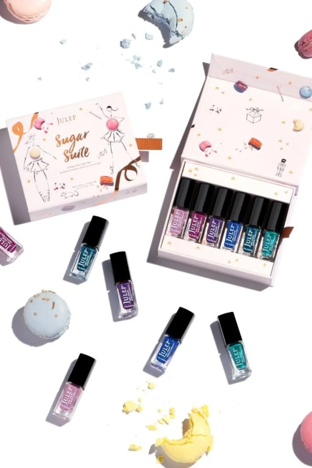 7. Julep Sugar Suite 6 Pc Mini Nail Set: هي عبارة عن مجموعة مصغرة من المناكير بستة ألوان لامعة ومختلفة هي: الأرجواني، الأزرق، الأخضر، الوردي، العنابي، والفيروزي. إنها عملية جداً وملائمة لكافة المناسبات.