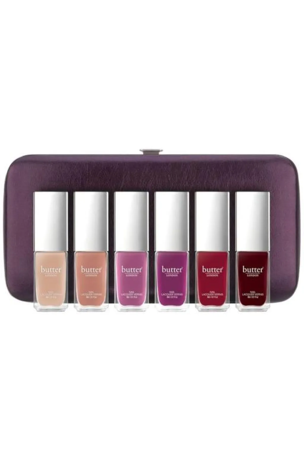 2. Butter London Playing Favorites Patent Shine 10X Nail Lacquer Set: تتضمن هذه المجموعة من المناكير 6 ألوان مختلفة تبدأ بالبيج الفاتح وتنتهي بالأحمر القاتم، وهي عملية جداً ومن الخيارات التي تناسب مختلف المناسبات.