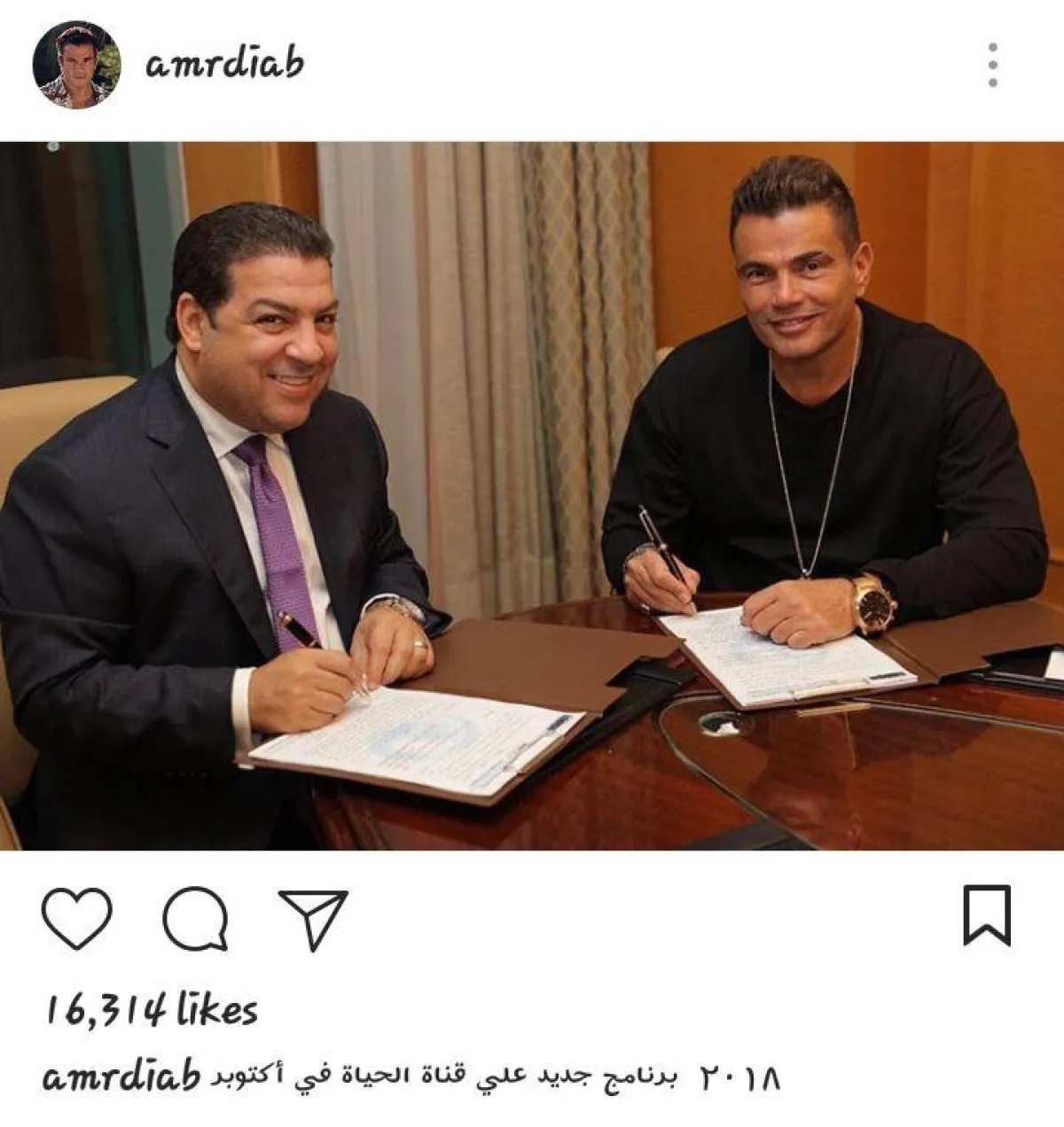 استمرارًا لمسلسل مفاجآت المطرب عمرو دياب، أعلنت قناة الحياة مساء أمس توقيع أول عقد مع الفنان، لتقديم برنامج عالمي سيبدأ التحضير له خلال أيام، على أن يبدأ البث في شهر أكتوبر من العام 2018، لينضم البرنامج لمشروع الفيلم المقرر تصويره قريبًا والمسلسل المؤجّل منذ عامين.