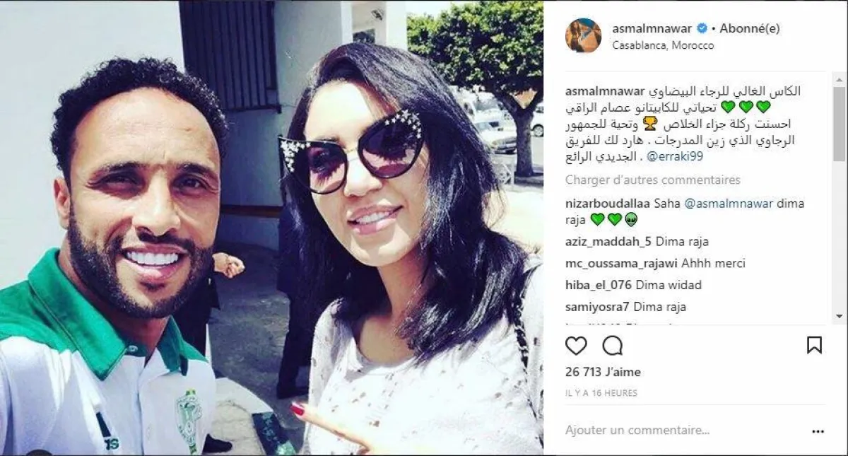 ما قصة صورة أسماء المنور مع لاعب الرجاء البيضاوي؟