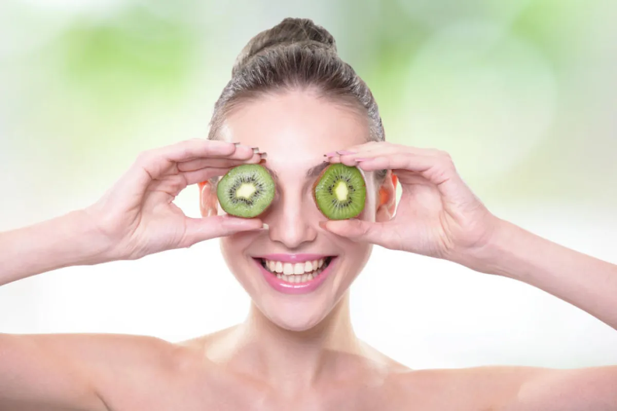 يُعتبر الكيوي من أروع الفواكه الغنية بفيتاميني A وE المغذيين للبشرة، واللذين يحميان الجلد من عوامل الأكسدة المختلفة، كما أن الكيوي غني بفيتامين C، الذي يعمل على إنتاج الكولاجين الذي يقلل من تشققات الشفاه ويحافظ على شباب البشرة وتوهجها باستمرار، إضافة إلى الفوائد الأخرى المتعلّقة بنعومة البشرة والشعر والأظافر أيضاً.