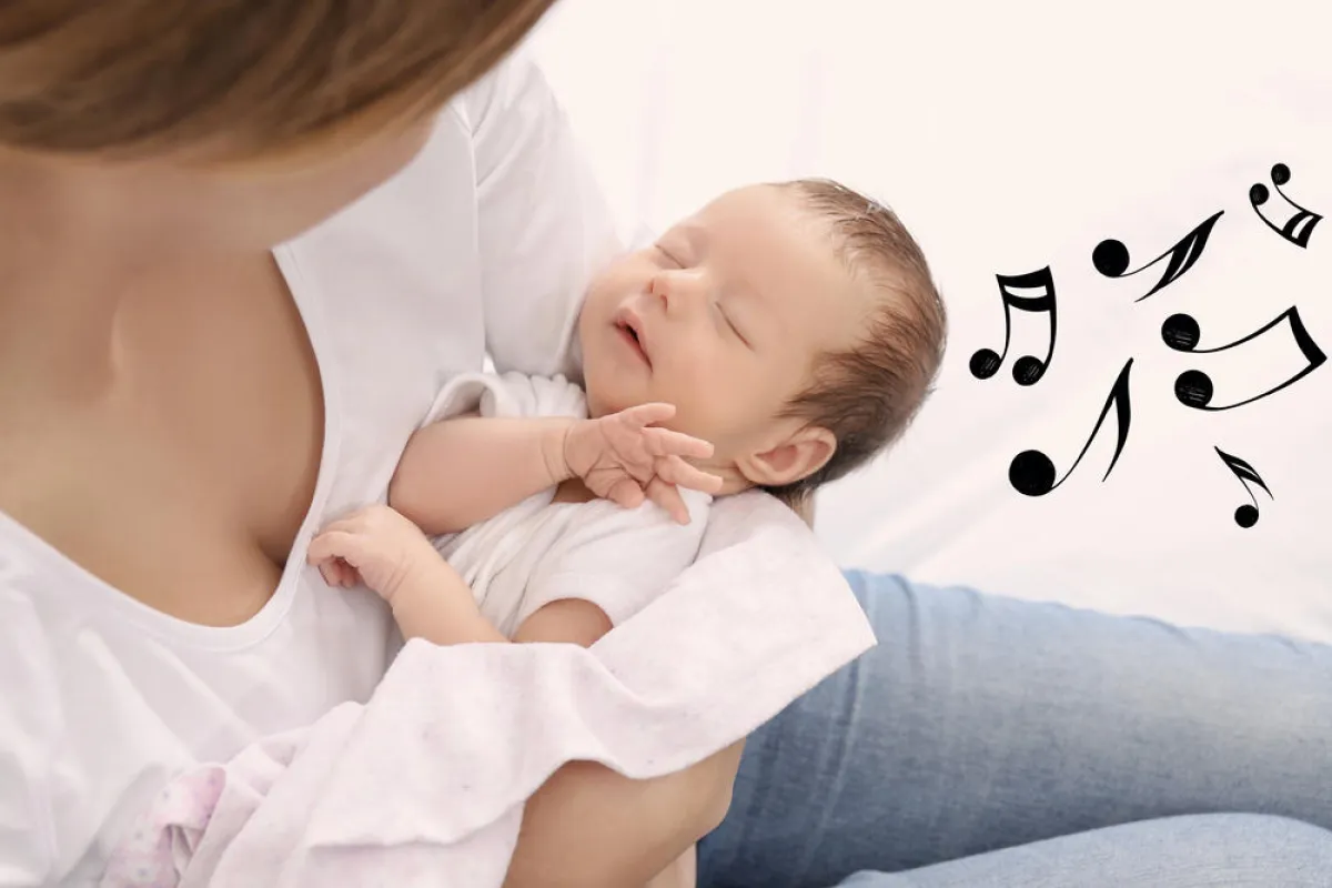 وعندما تقوم بوضعه في سريره وتعده للنوم أو حتى فوق صدرها فهي تغني له: