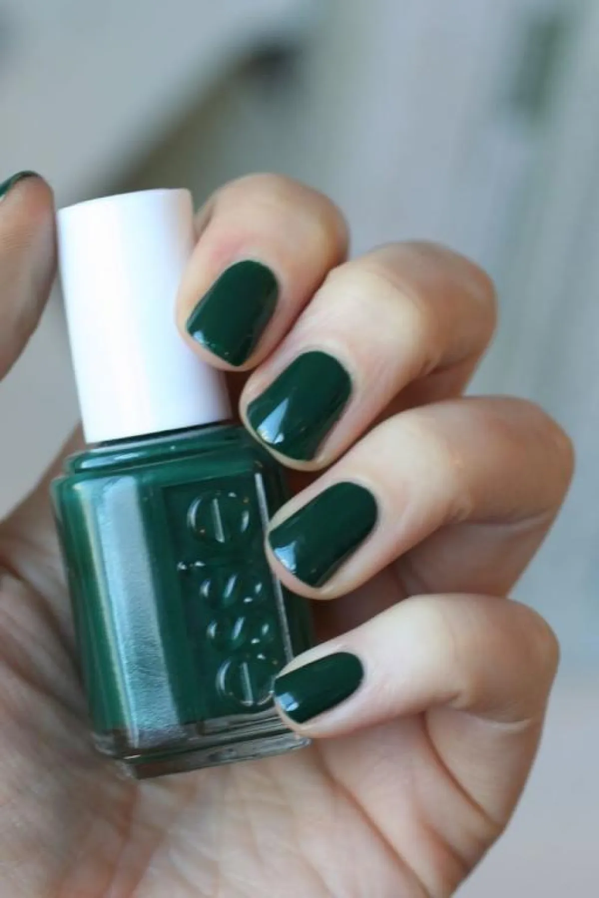 -الأخضر الداكن Forest Green : تحبين الظلال الداكنة، ولكنكِ لا ترغبين باختيار اللون الأسود أو البني؟ في هذه الحالة، ننصحكِ بتجربة المناكير الأخضر الداكن. هذا الظل يضفي طاقة إيجابية لملابسكِ هذا الموسم.
