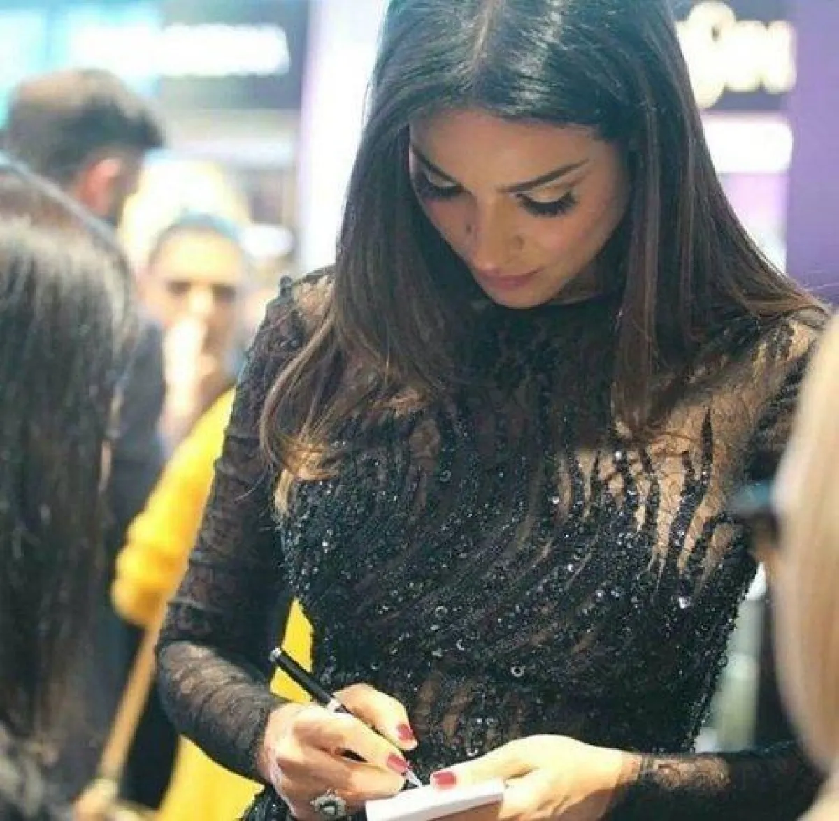 تألقت ملكة جمال لبنان السابقة نادين نسيب نجيم بفستان من تصميم اللبناني العالمي زهير مراد Zuhair Murad ، وذلك في حفل افتتاح ماركة مكياجها الخاص من "makeup forever" العالمية في الكويت.