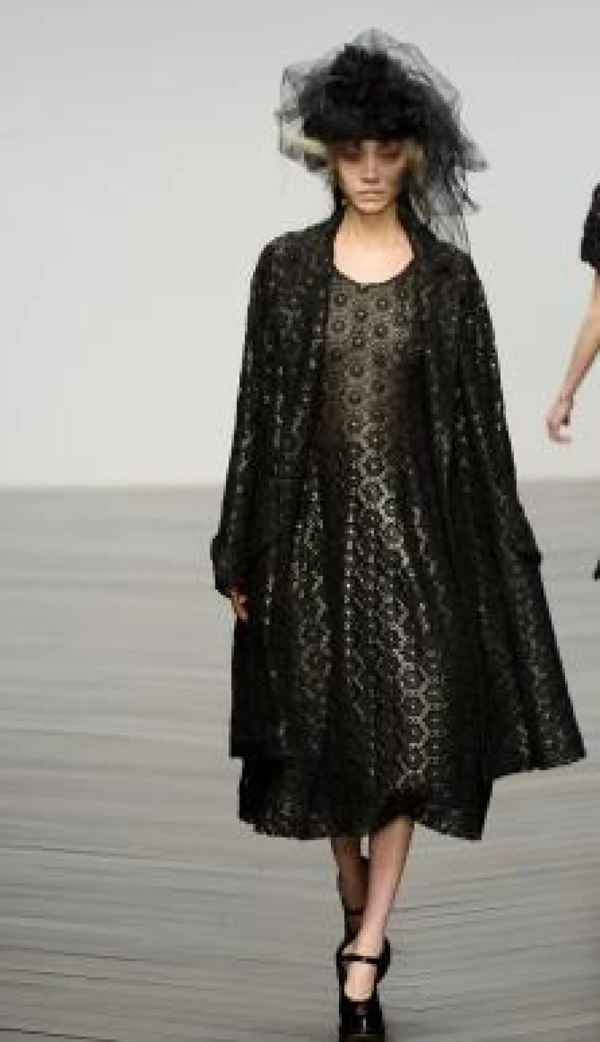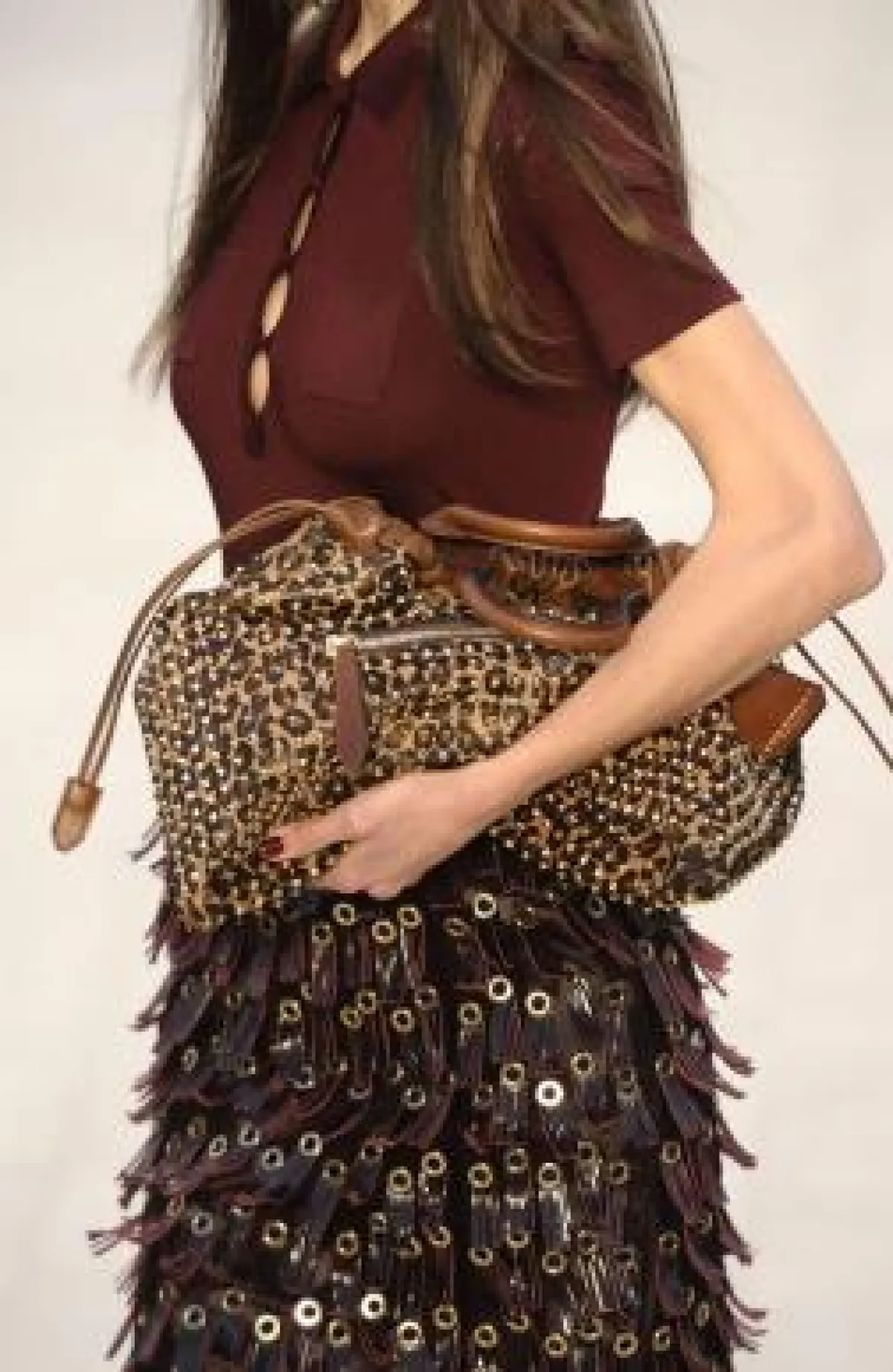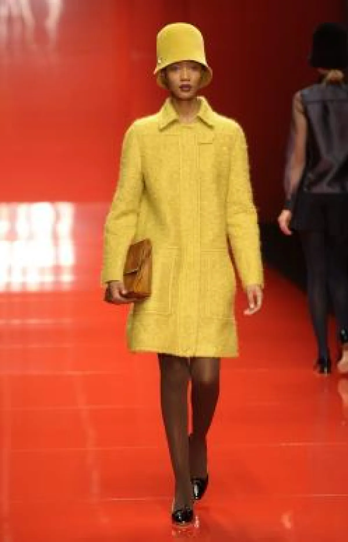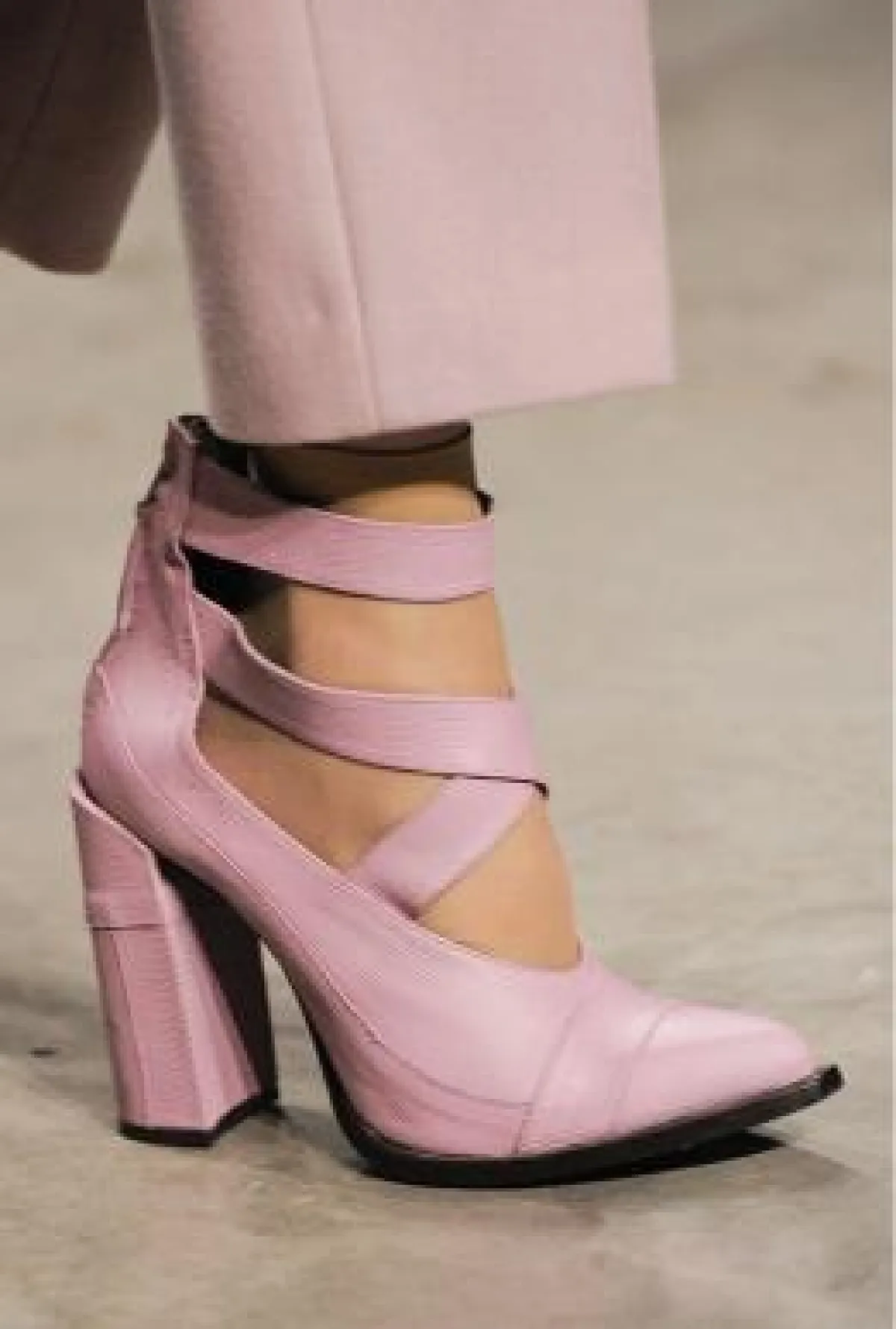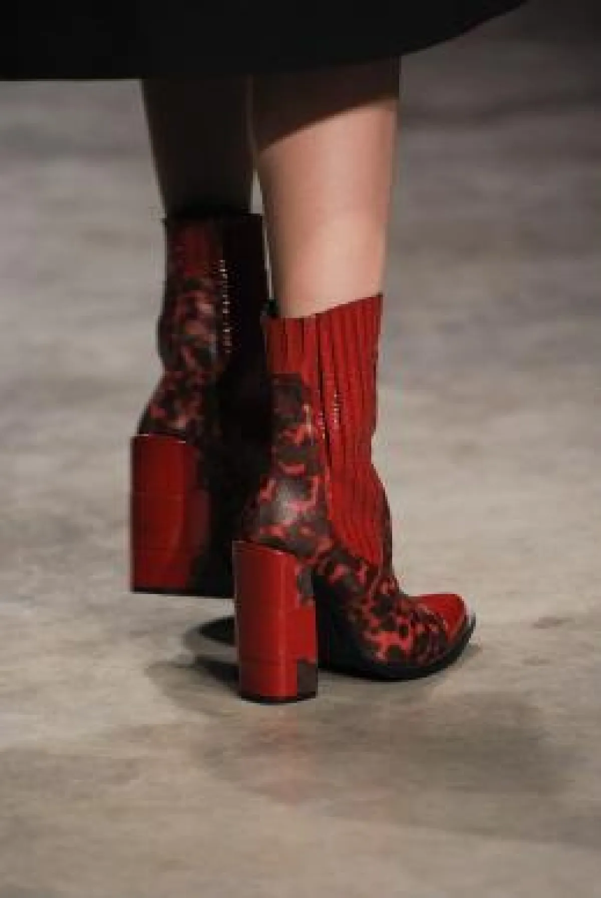 • كذلك الحال مع الأحذية التي تنوعت من عرض إلى آخر مع ظهور قوي للأحذية مرتفعة الساق ( بوت) بكعوب بلاتفورم فسفورية وأخرى من جلود الحيوانات أو الجلود المصنعة اللماعة , وظهرت ألوان غير تقليدية مثل الأحمر الناري والأرجواني والرمادي المفضض والوردي.