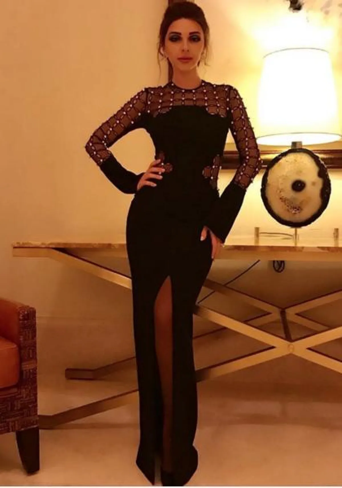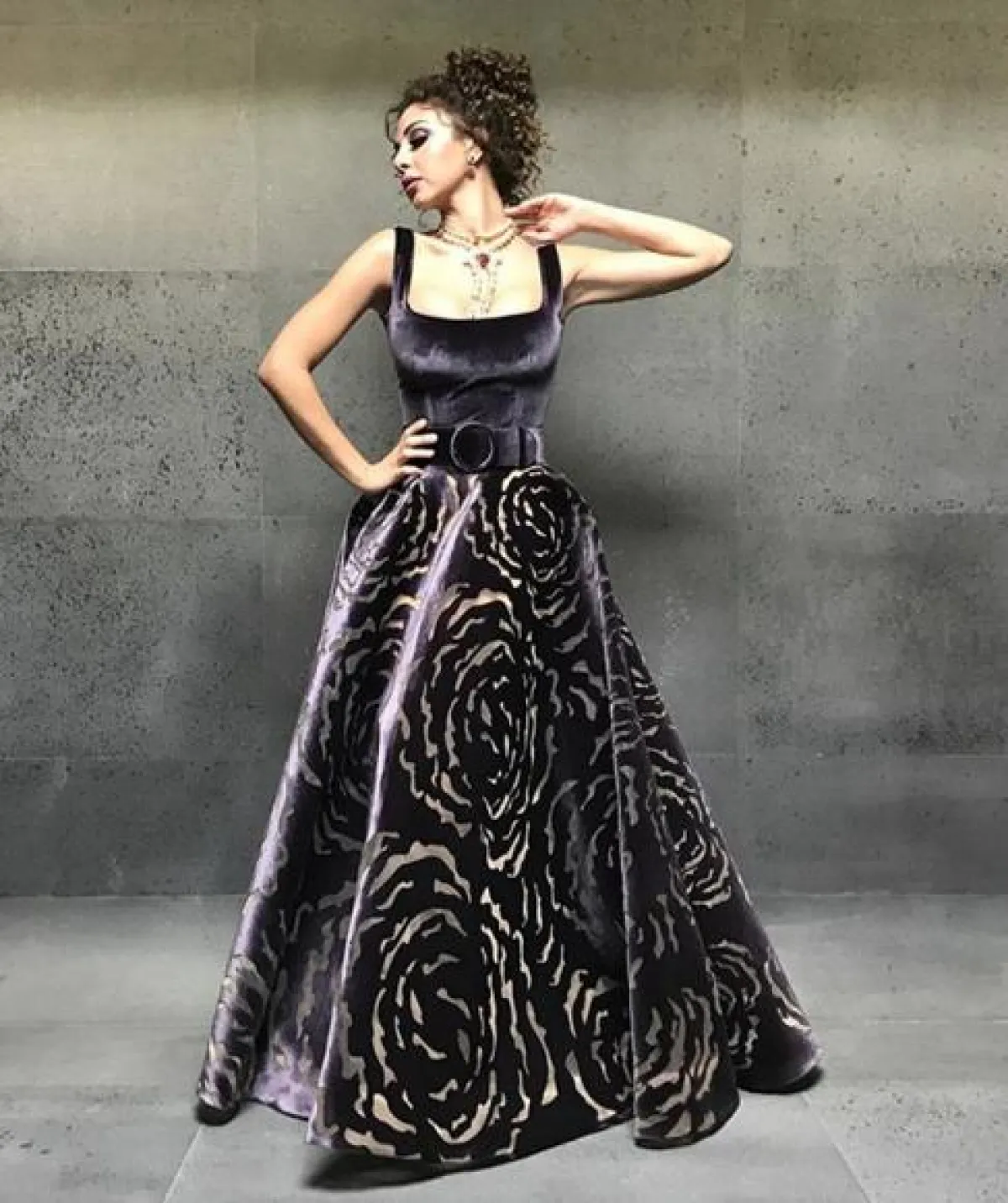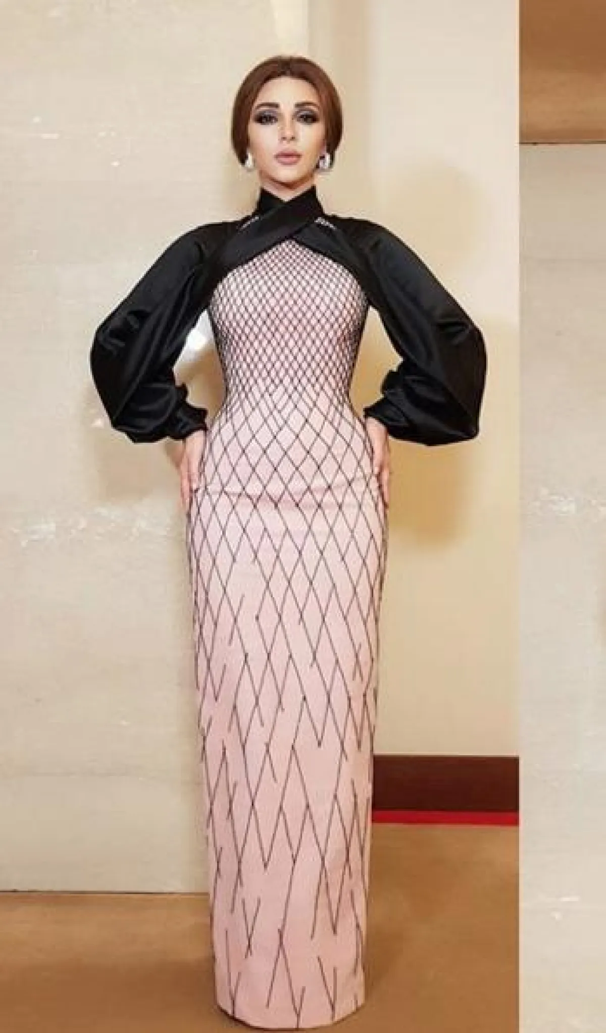 وقد تنوعت خياراتها بين فساتين السهرة باللون الأسود، والتي أضافت بها لمسات دراماتيكية لاطلالاتها، وبخاصة أنّ هذه الفساتين صُنعت من أقمشة فاخرة مميزة مثل الدانتيل أو الشيفون، أو التول، وبعضها كان مزيّنًا بحبات الترتر البراقة التي أضافت بها لمسات من الفخامة.