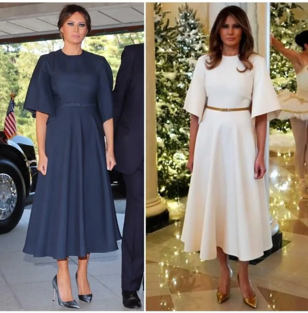 أيّ لون يليق أكثر باطلالة ميلانيا ترامب، الكحلي أم الأبيض من ديور؟