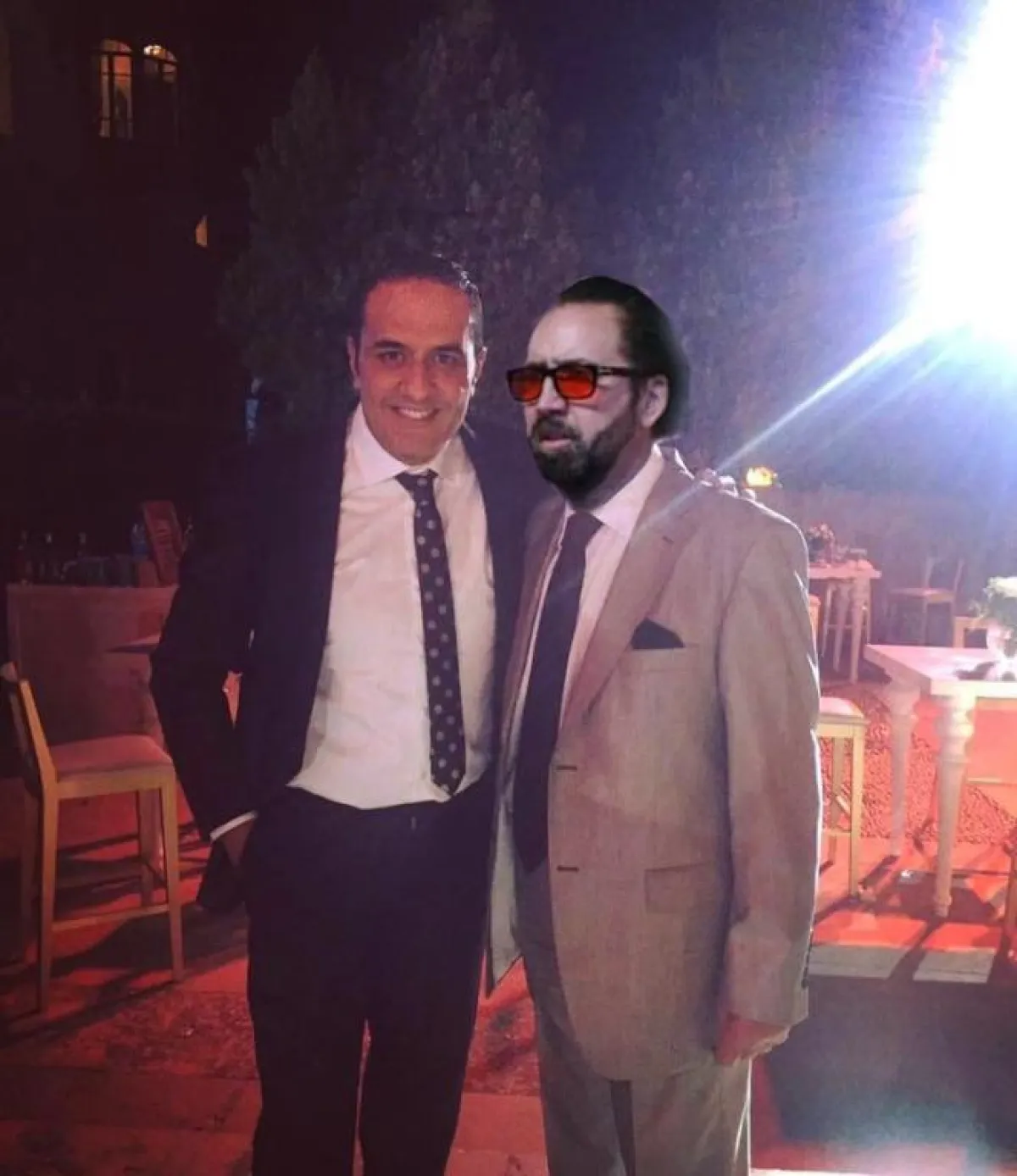 شر الممثل الشاب خالد سرحان صورة مفبركة له مع الفنان العالمي نيكولاس كيدج، وذلك عبر حسابه على موقع التواصل الاجتماعي "فيس بوك"، وكتب معلّقًا عليها: "أول ما شافني قالي أنا عارفك، وما بفوّتش حلقة من يوميات زوجة مفروسة.. عن نيكولاس كيدج المتواضع أتحدث".