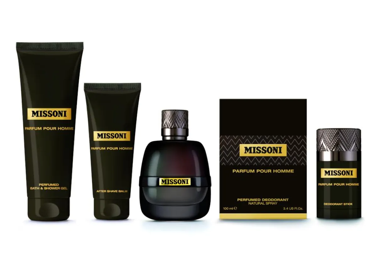 فبعد غياب طويل من سوق المستحضرات الرجالية، ضمّت الدار جهودها إليEuroItalia لابتكار غرض ذكوري من دون أدنى شكّ. مستوحى من لوحة جديدة من الألوان، يتمتّع بالقدرة ليشكّل مجابهةً وحواراً في آنٍ معاً مع رجل "ميسوني" Missoni العصري.