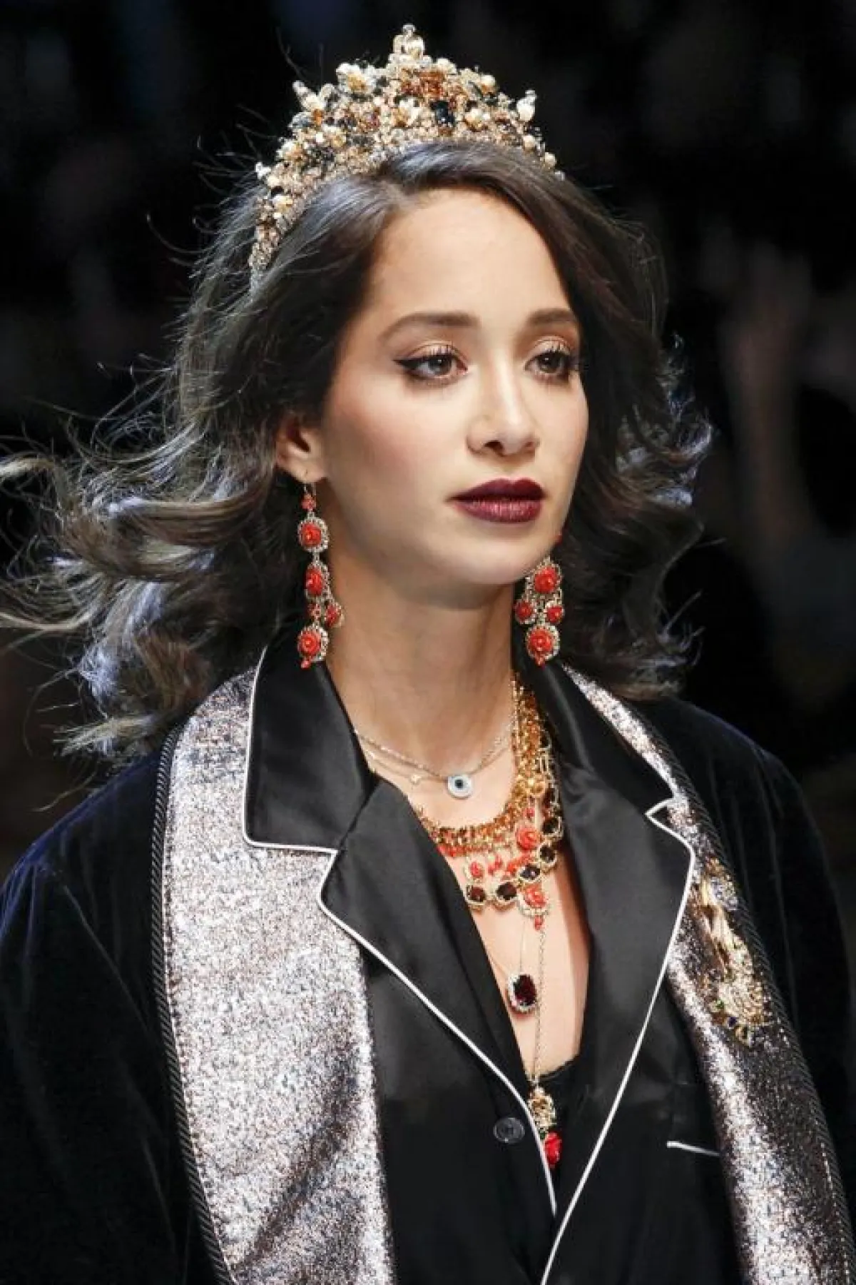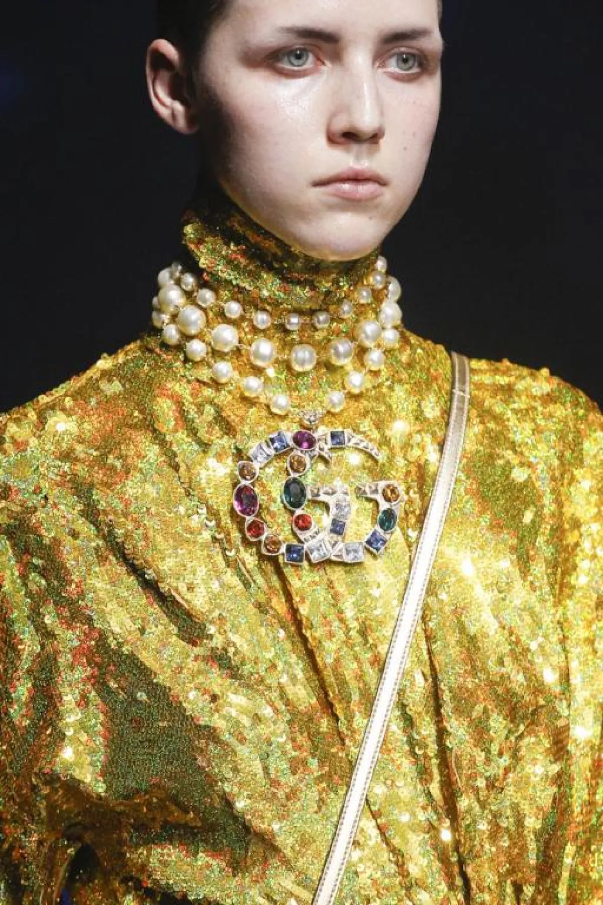 كما شاهدنا المجوهرات الذهبية المرصعة بالأحجار الملونة، لدى كل من "غوتشي" Gucci، و"دولتشي أند غابانا" Dolce&Gabbana.