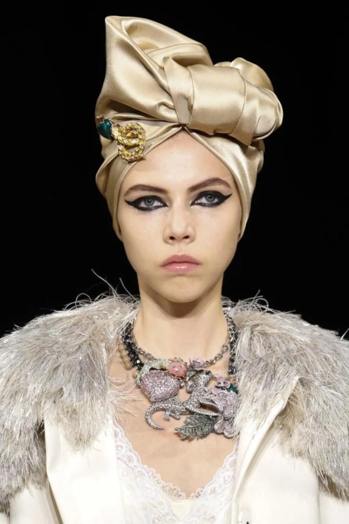وقد لفتتنا موضة التوربان على منصات العروض، والتي من الممكن أن تكون المفضلة بالنسبة للنساء في الشرق الأوسط.