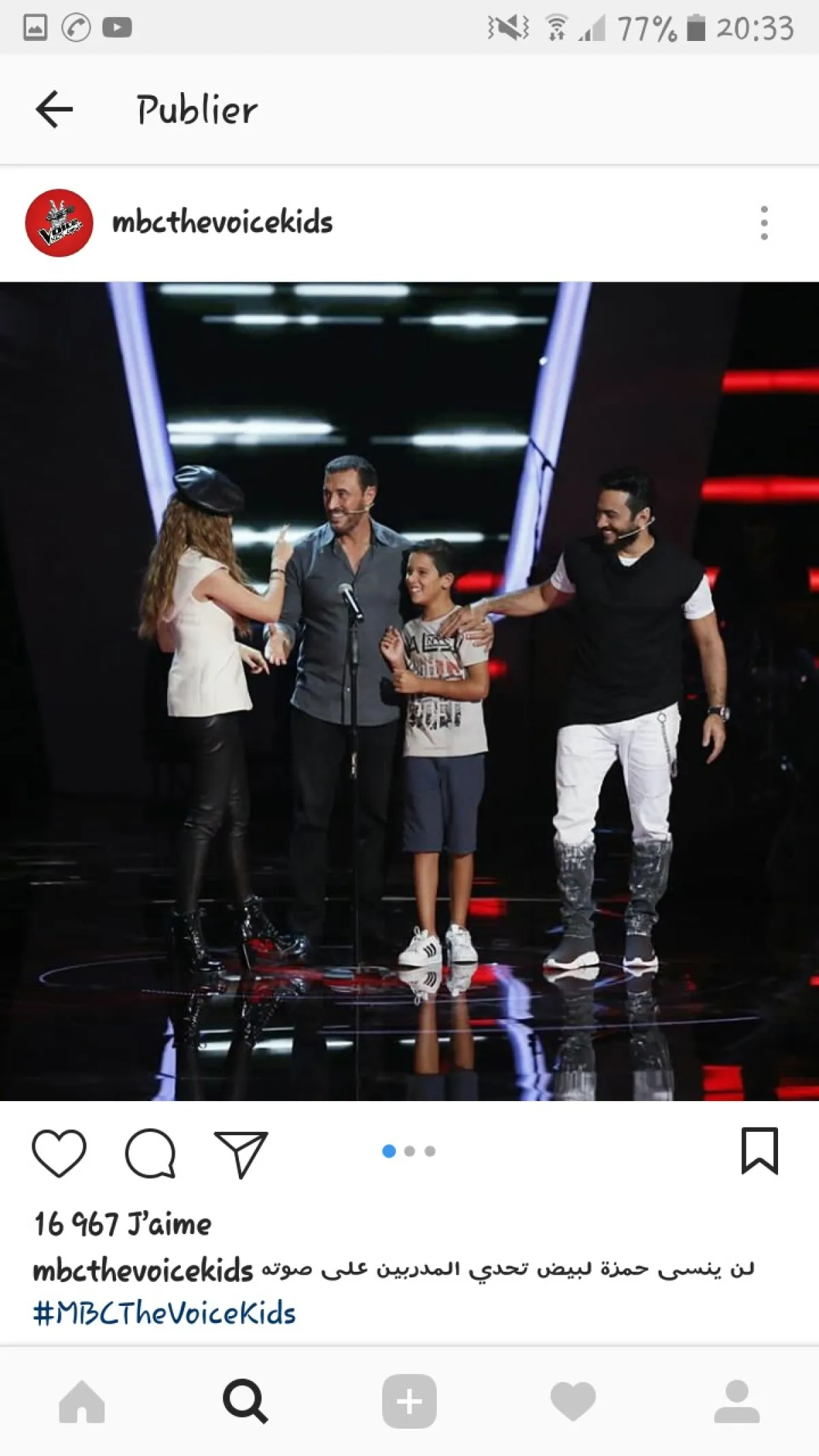 وأكد بوريقي، نجم الموسم الأول من برنامج "ذا فويس"، إعجابه بأداء حمزة فوق خشبة البرنامج، ومساندته له بالقول: "تبارك الله عليك حمزة، واصل وأنا معك للنهائي إن شاء الله.
