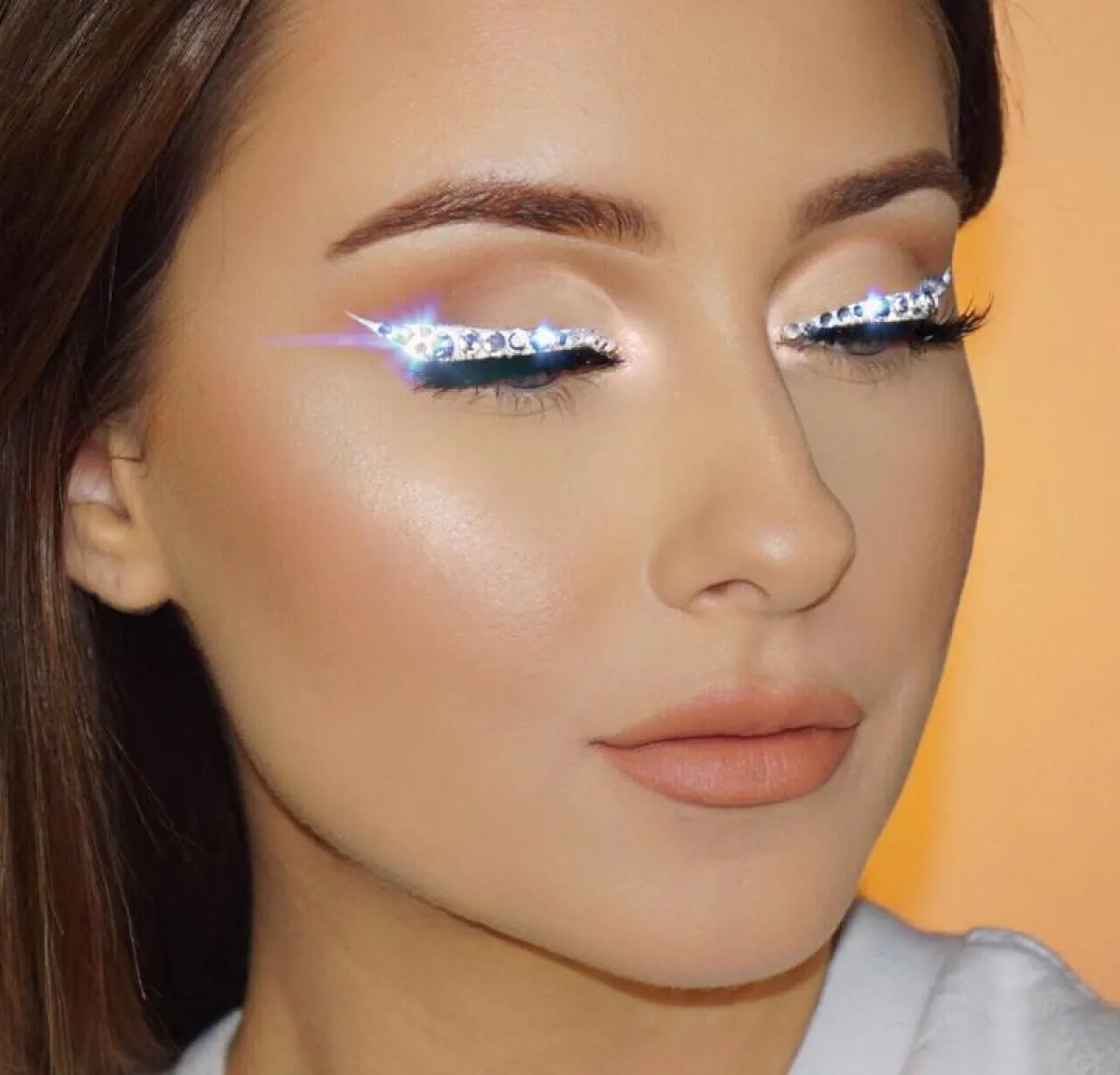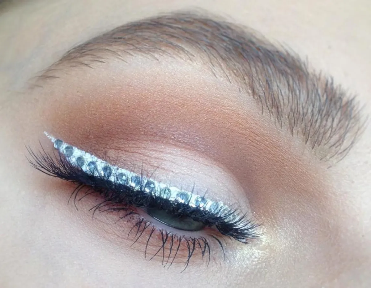 في البداية، قومي بتحديد كامل الجفن الأعلى حتى زاوية العين الخارجي، بالكحل الأبيض السائل، من خلال رسم خط بمحاذات الرموش العليا، على أن يبدأ رفيعاً وينتهي أكثر سماكة. من ثم، طبّقي الغراء على كامل الخط الأبيض، من ثم ألصقي فوقه حبات الكريستال أو الستراس، وذلك باستخدام ملقط متخصص، أو ملقط الحواجب. وإذا أردت أن تكون طلّتك مكتملة خلال العيد، اجعلي شفتيك بارزتين باستخدام أحمر الشفاه باللون الأحمر اللامع. بإمكانك أيضاً استخدام الكحل الأسود بدل الأبيض، في حال رغبت في ذلك.