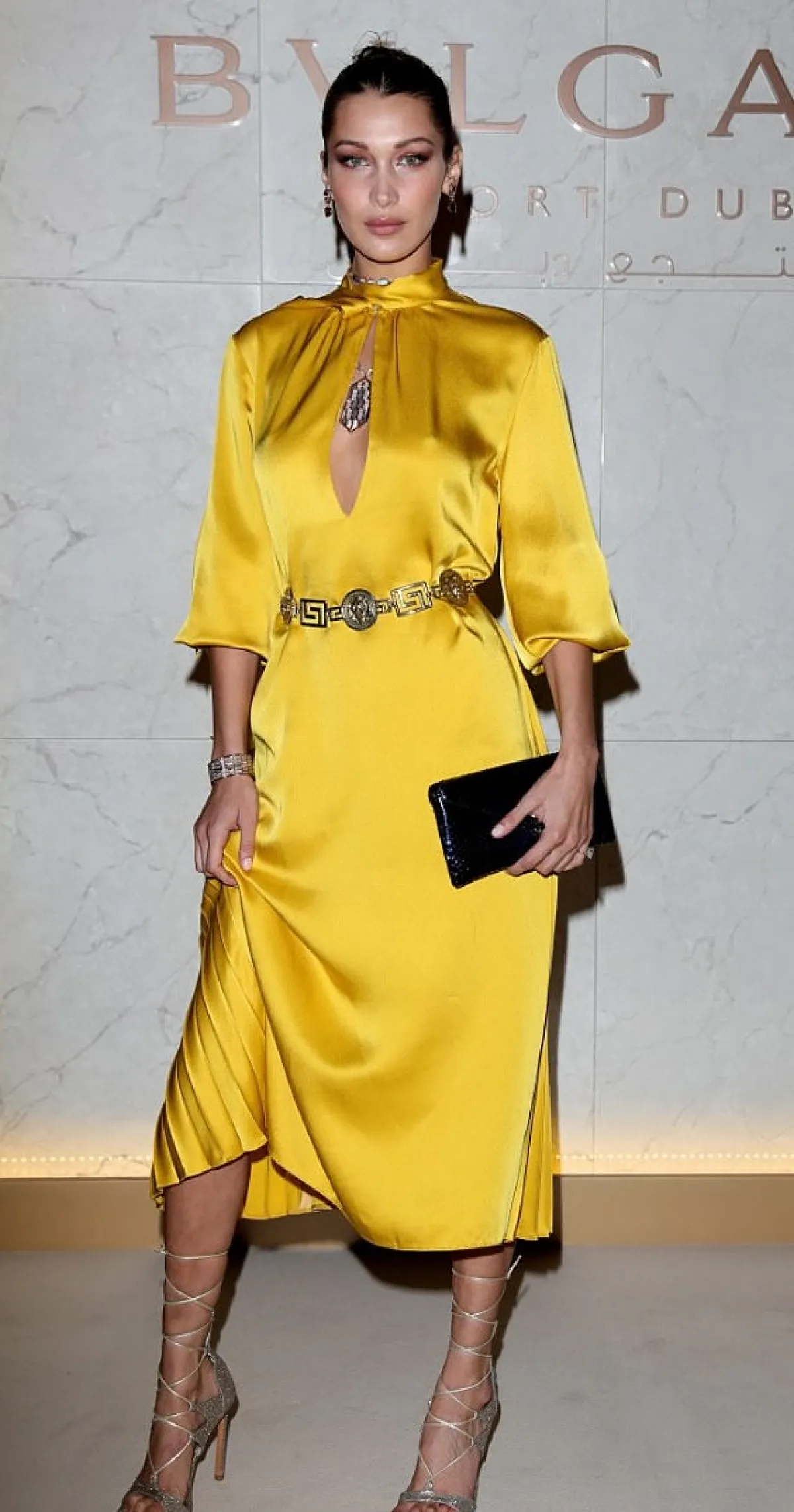 وصلت عارضة الأزياء الأمريكية، من أصل فلسطيني، بيلا حديد Bella Hadid إلى دبي، لحضور حفل افتتاح فندق بولغاري العالمي Bulgari.