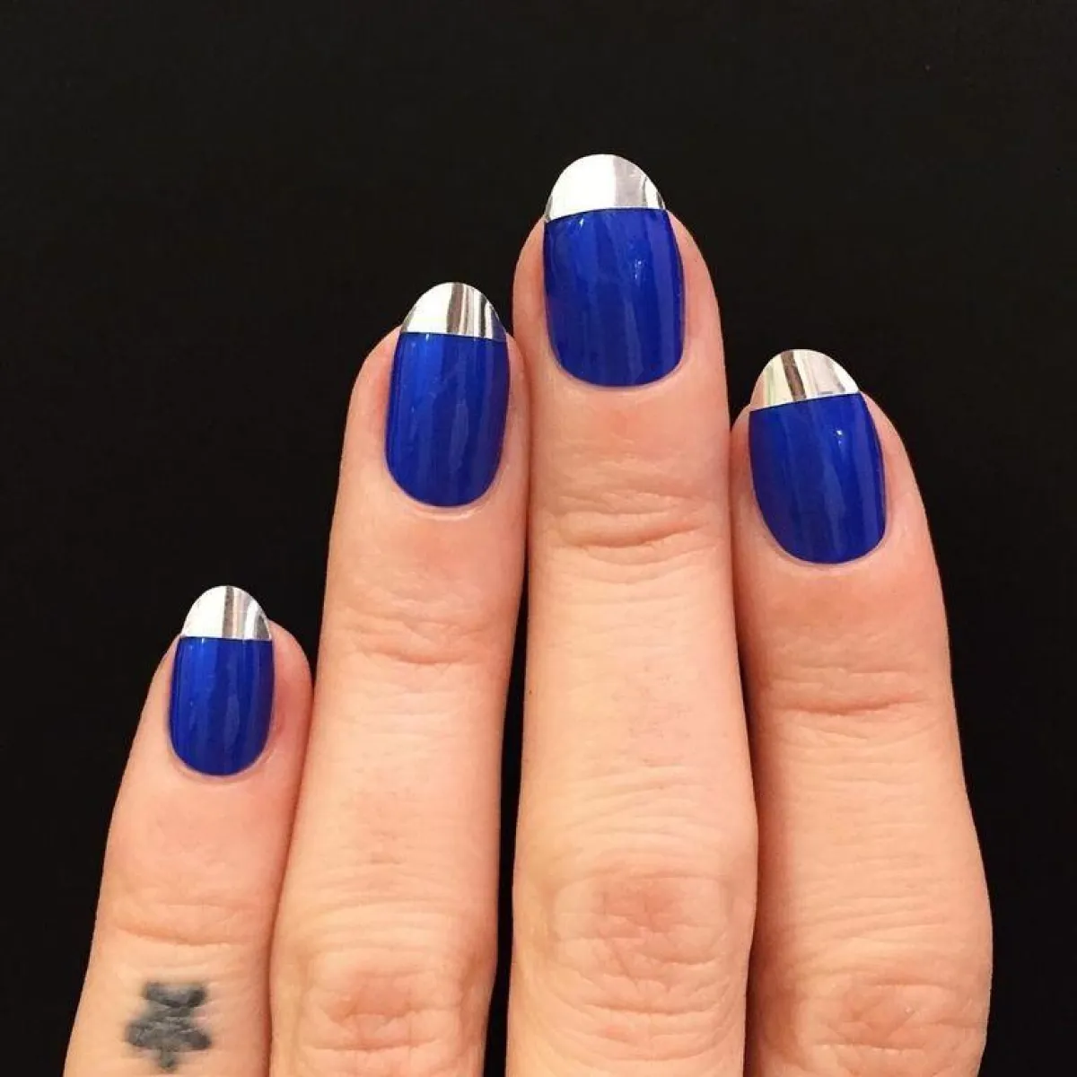 لمسة الكروم: اختيار الطلاء المفضل لديكِ وتطبيقه على القاعدة، ومن ثم إضافة الطلاء بلون الكروم على أعلى الظفر.