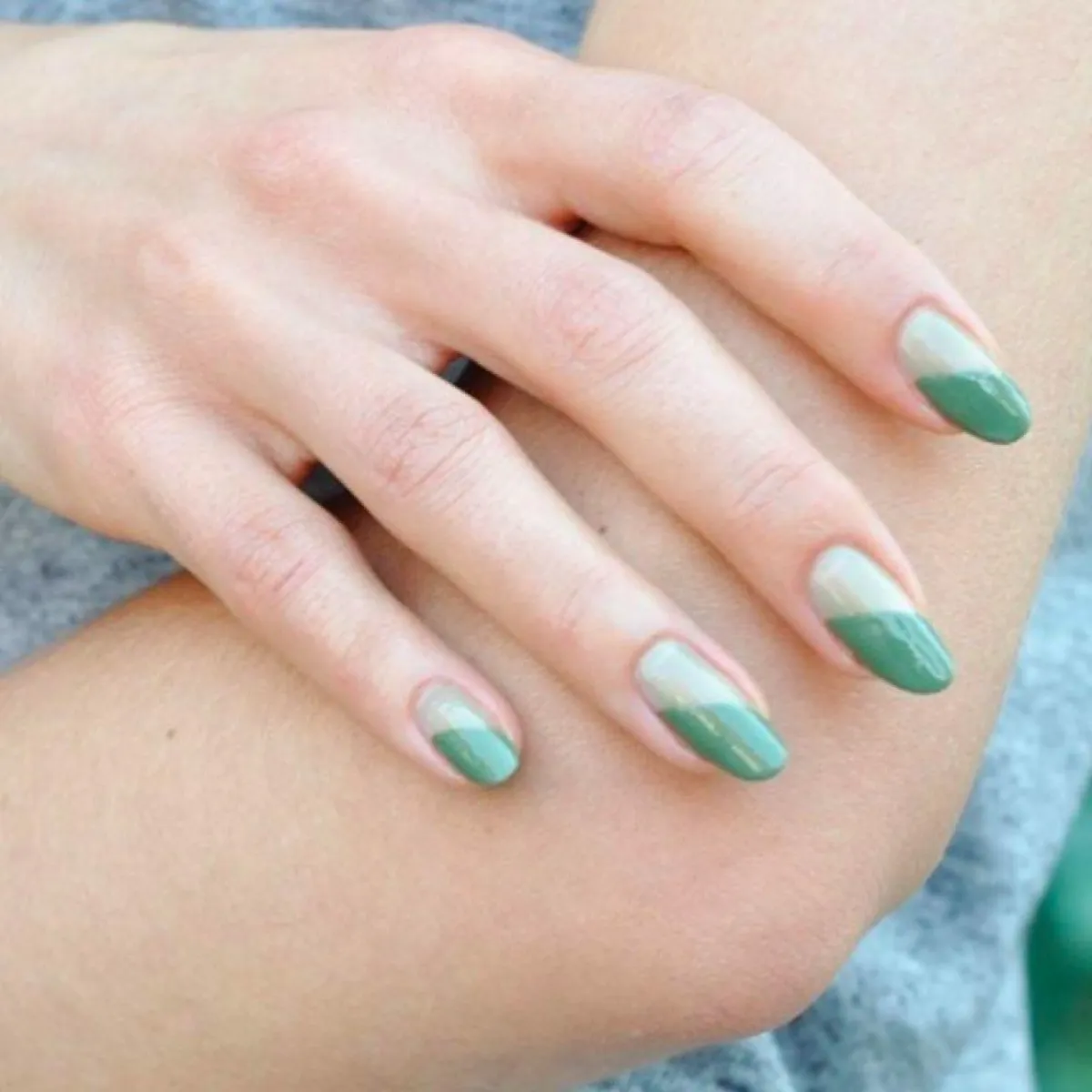 الخطوط المذهبة: طبّقي اللون الأساسي على القاعدة، ثم استخدمي الشريط اللاصق على نصف الظفر واطلي المساحة المتبقية باللون الذهبي. اتركي الأظافر حتى تجفّ قبل إزالة الشريط.