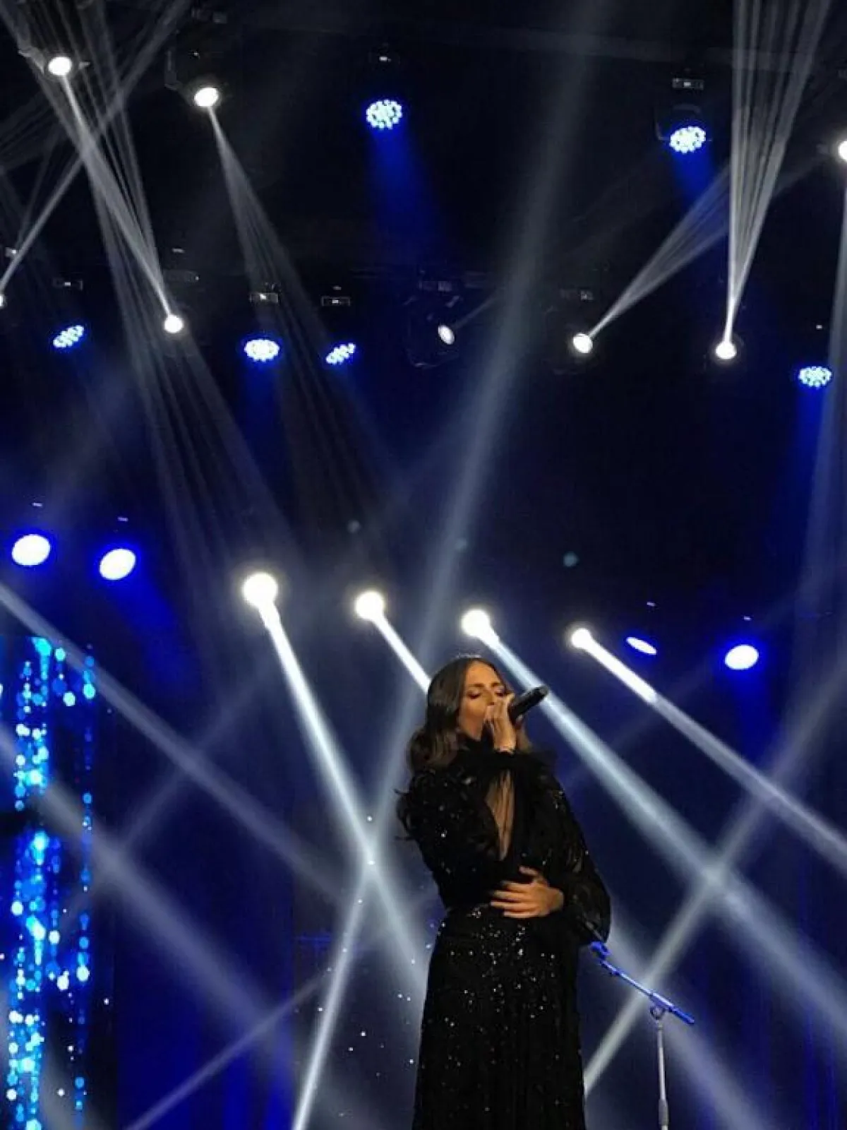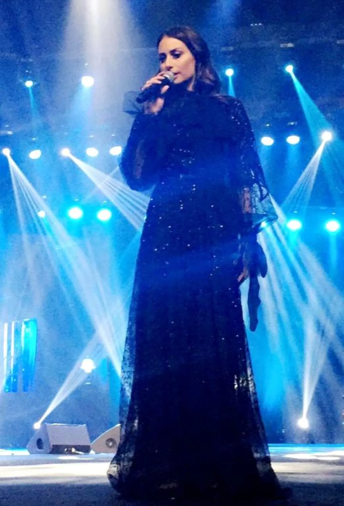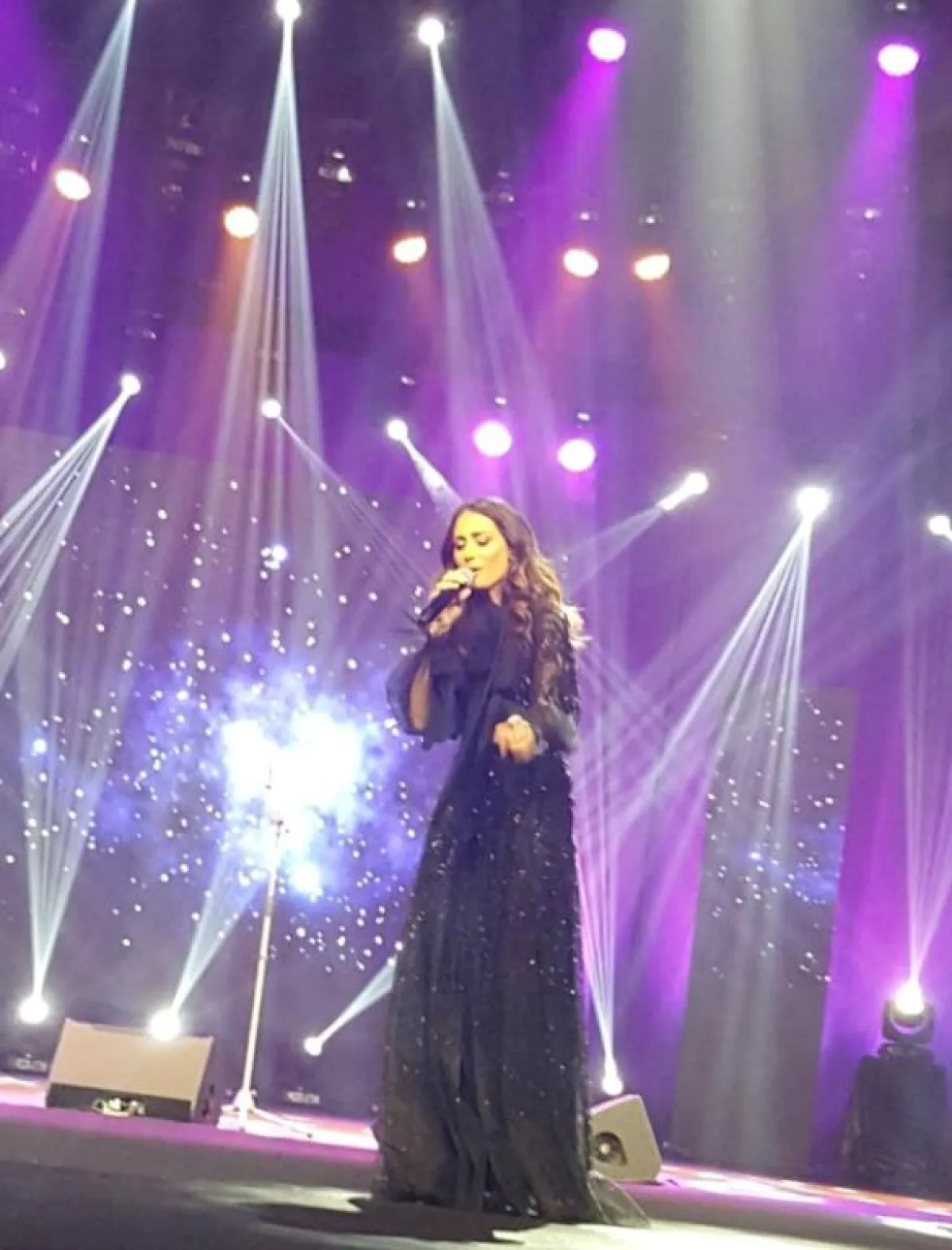 ومما جذب الحاضرات في الحفل أناقة الفنانة، وظهورها بفستان أسود طويل وأنيق، يتناسب مع المجتمع السعودي.