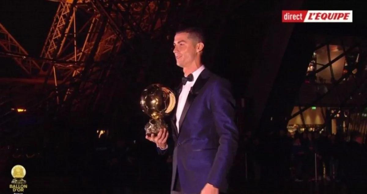 الجائزة التي سرقها رونالدو للمرة الخامسة، تمنحها مجلة "فرانس فوتبول" الفرنسية سنوياً لأفضل لاعب كرة قدم في العالم.
