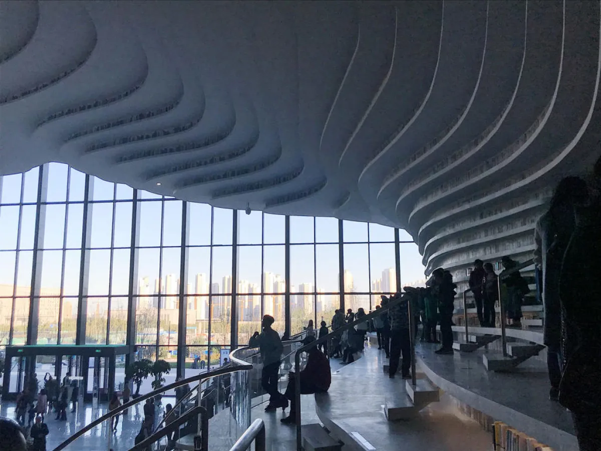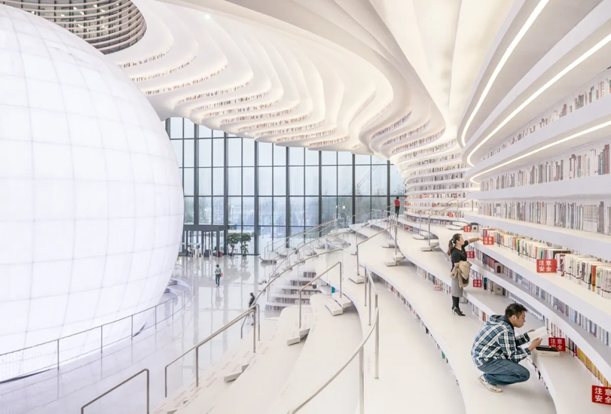 وقد كشف مؤخراً عن مكتبة Tianjin Binhai العامة الواقعة فى شمال شرقي الصين، باهتمام واسع النطاق بعد عملية استمرت ثلاث سنوات؛ للمساعدة على بناء مجمع ثقافي في مدينة تيانجين.