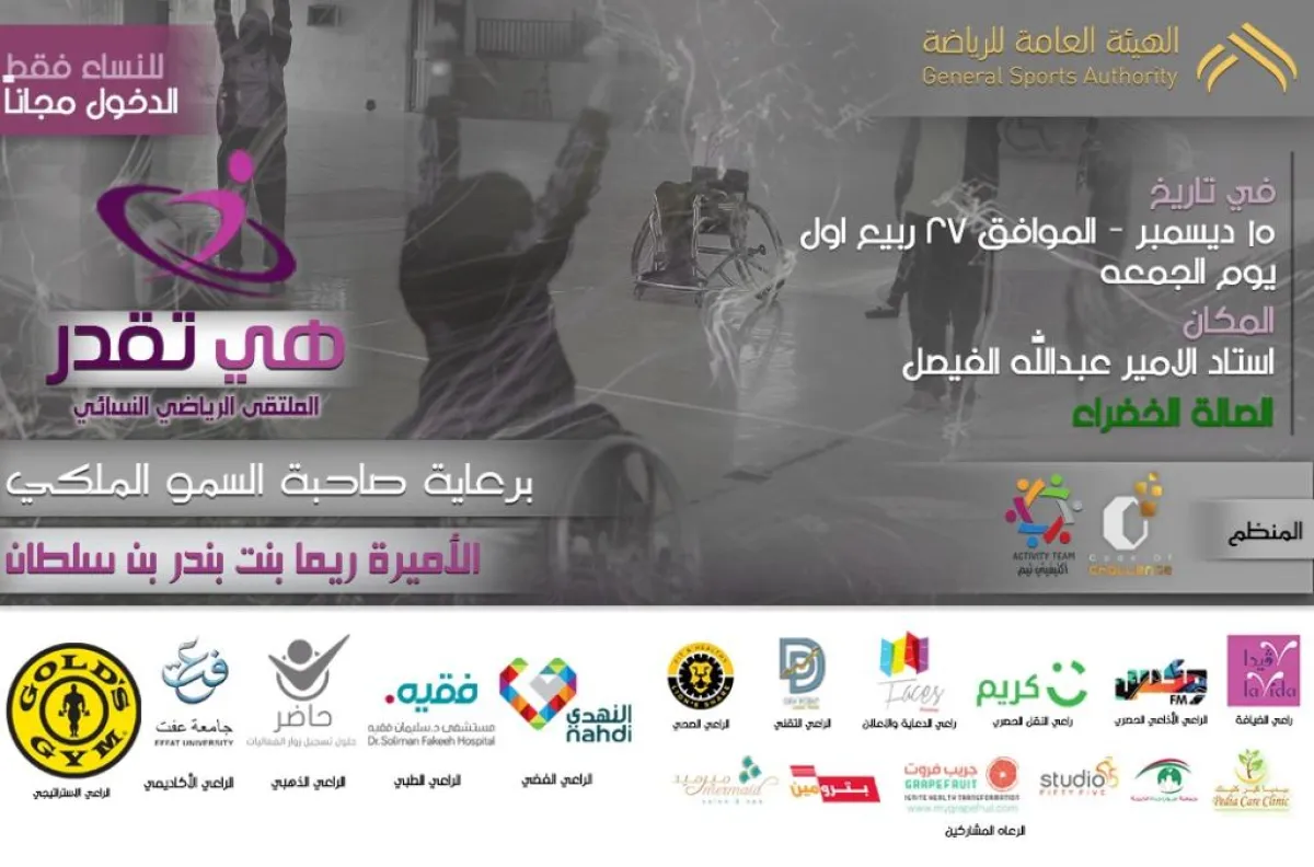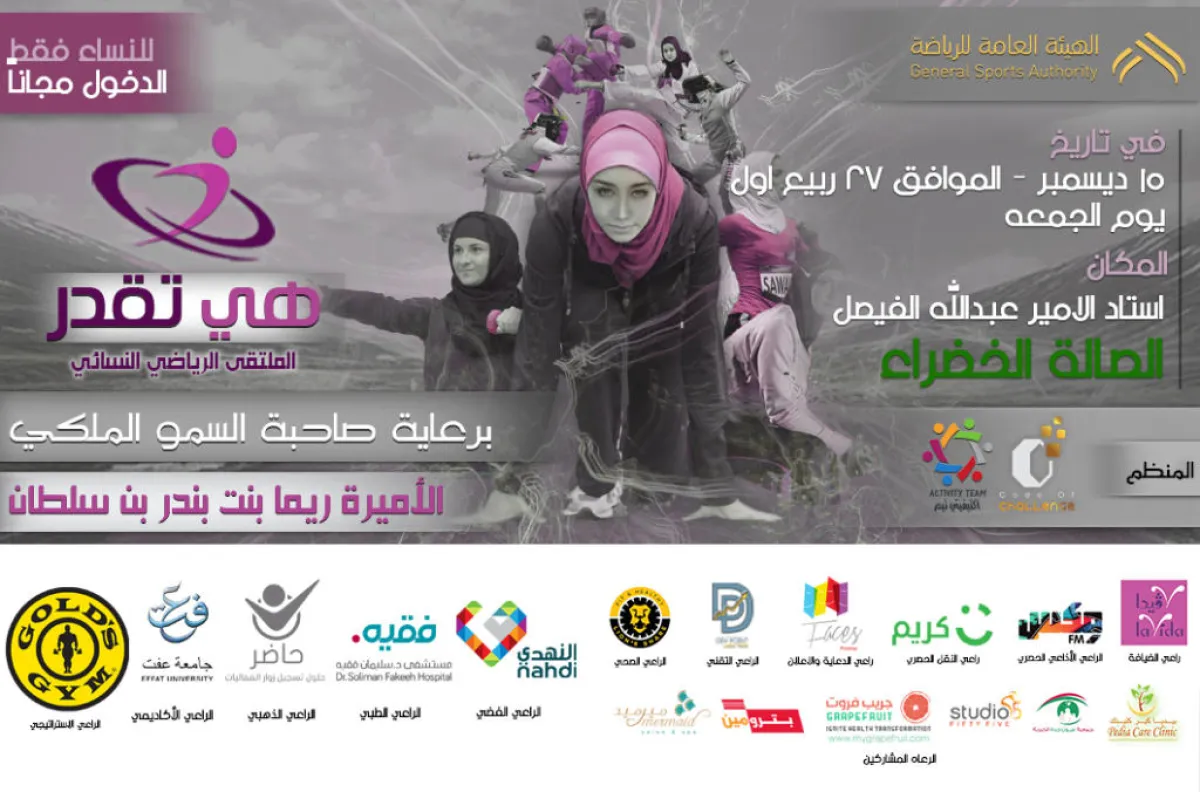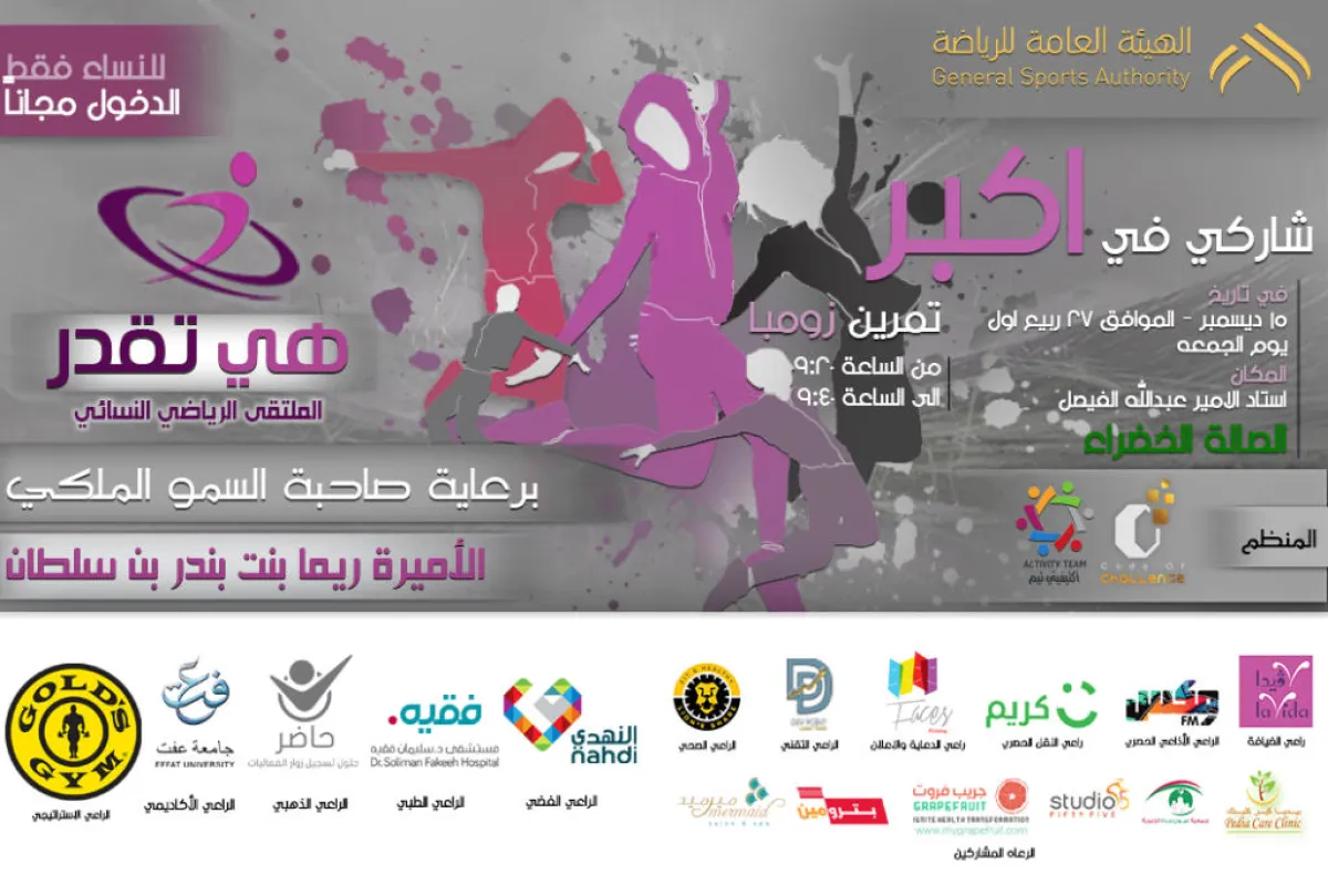 حيث سيقام التمرين في ١٥ ديسمبر الجاري، بمشاركة عدد كبير من الفتيات السعوديات، وسيكون حضور الفعالية مجانياً تماماً كالخدمات المصاحبة، حيث تشمل الفعالية أيضاً عدة عروض نسائية احترافية في الكاراتيه والجمباز واليوجا، وقيام مجموعة من الفتيات السعوديات بتقديم عروض مميزة لأول مرة، بالإضافة إلى مبادرة رياضية لتشجيع ذوي الاحتياجات الخاصة من قبل هيئة الرياضة بمناسبة اليوم العالمي للاحتياجات الخاصة.