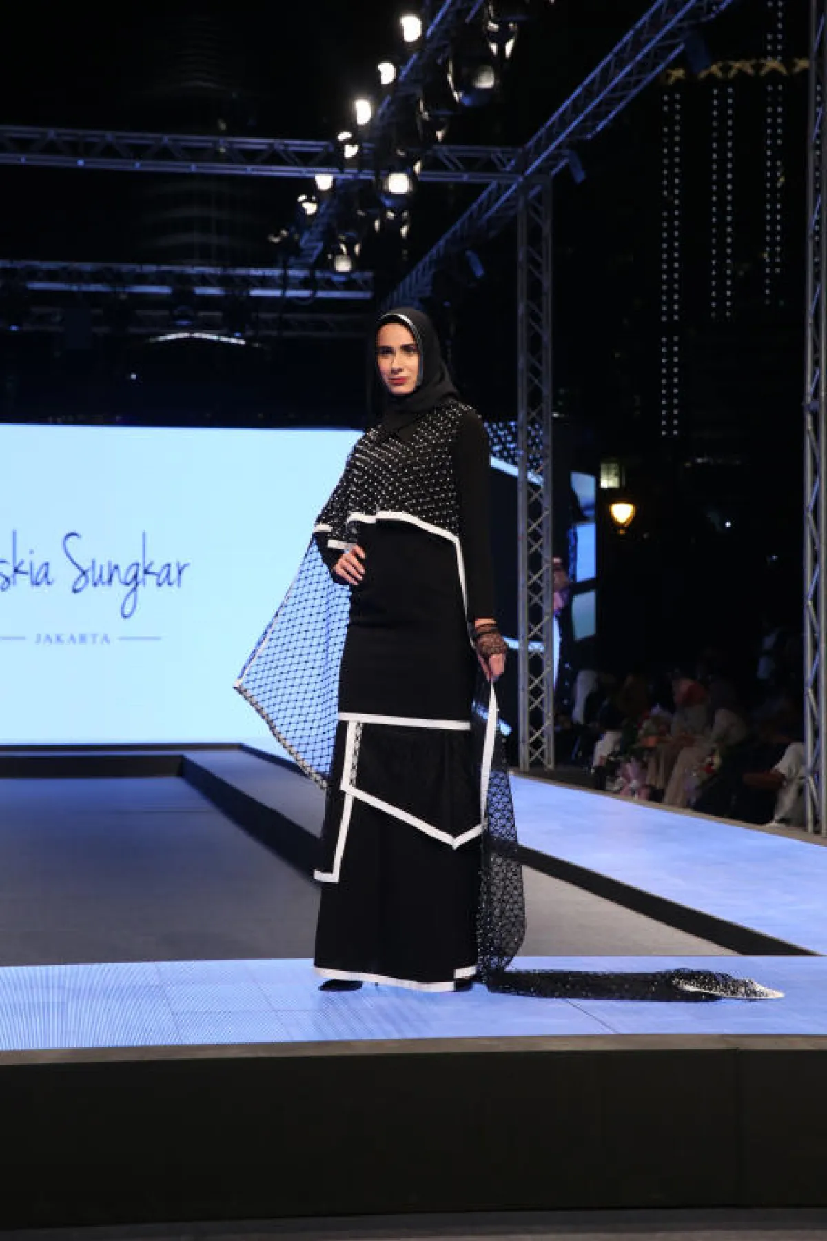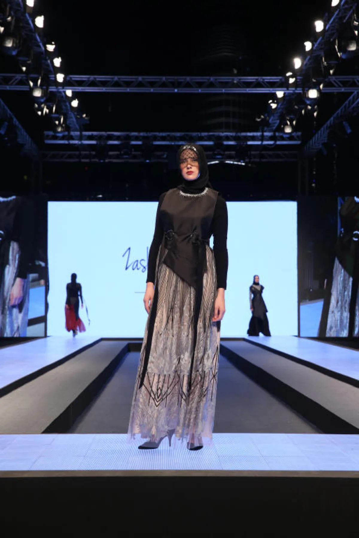 رصعت المصممة Zakia Sungkar فساتينها بالستراس وادخلت الخامات بألوان معدنية لفساتينها، لفتتنا إطلالتها مع جاكيت رسمي، رصعت نصفه بالستراس اللامع فيما أبقت النصف الاخر على حاله مع قماش أسود منهدل، كذلك تميزت تصاميم Dulce By Safiya بألوانها المعدنية.