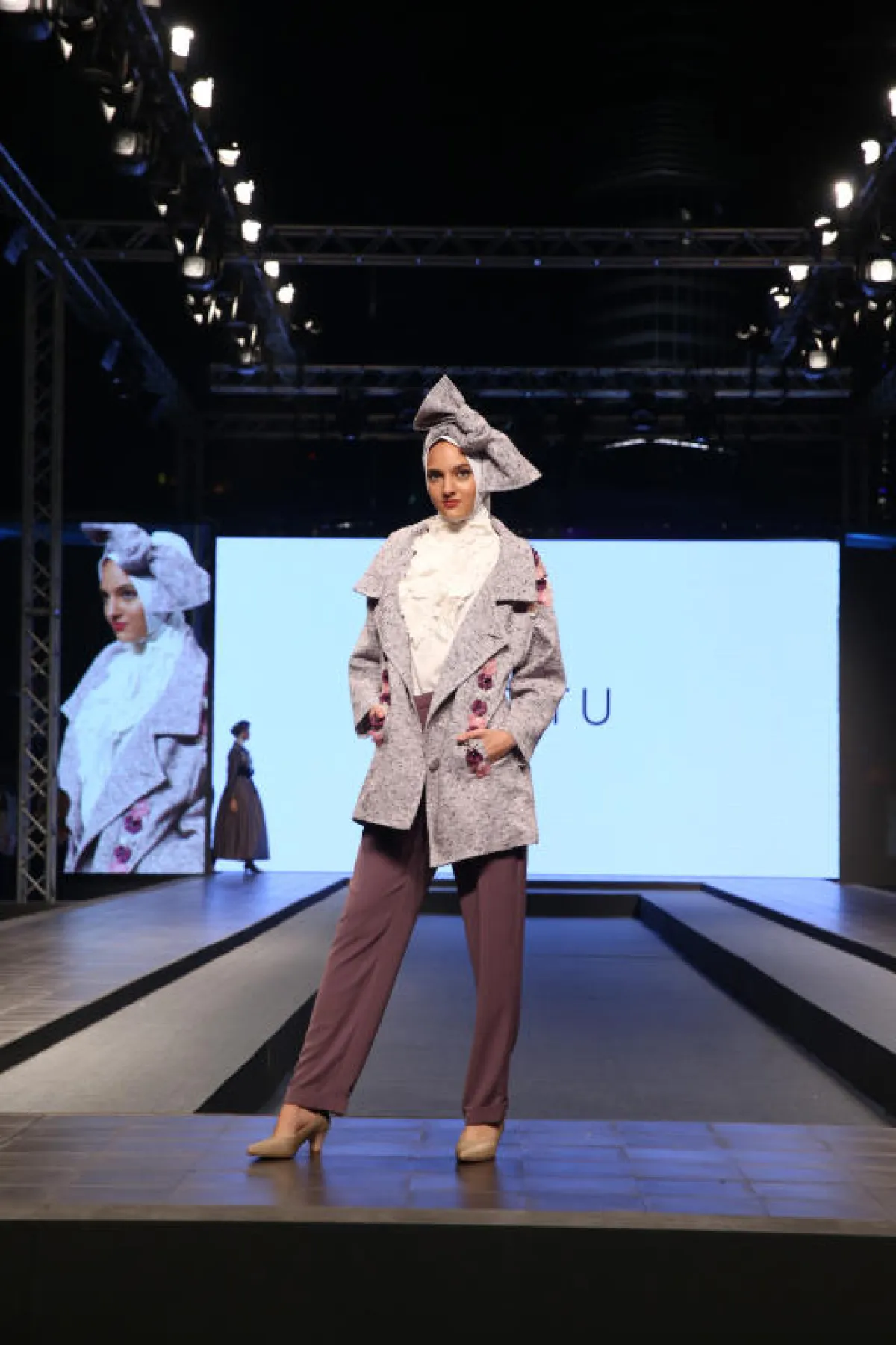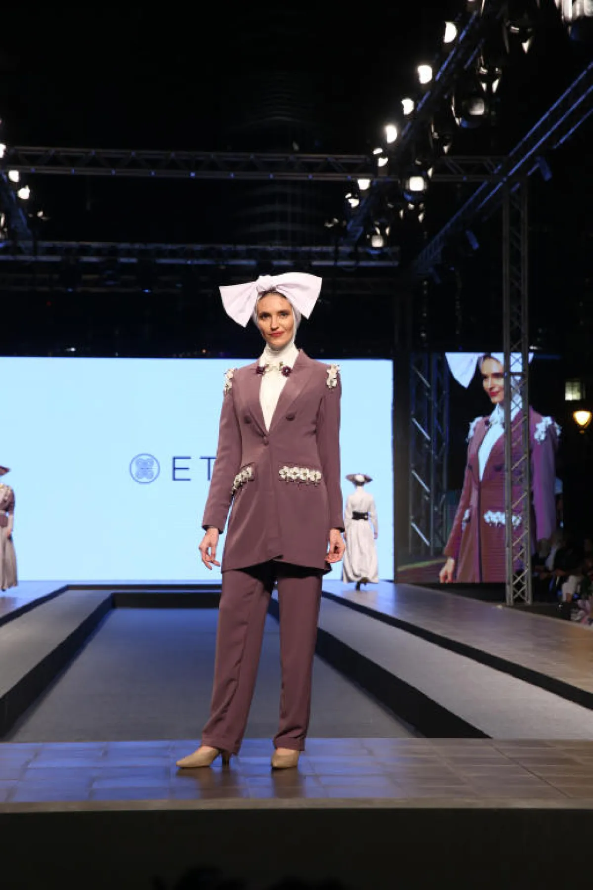 تميّزت تصاميم ETU بربطة "الببيون" الكبيرة فوق الحجاب والأطقم والفساتين التي تذكرنا بالعصور القديمة.