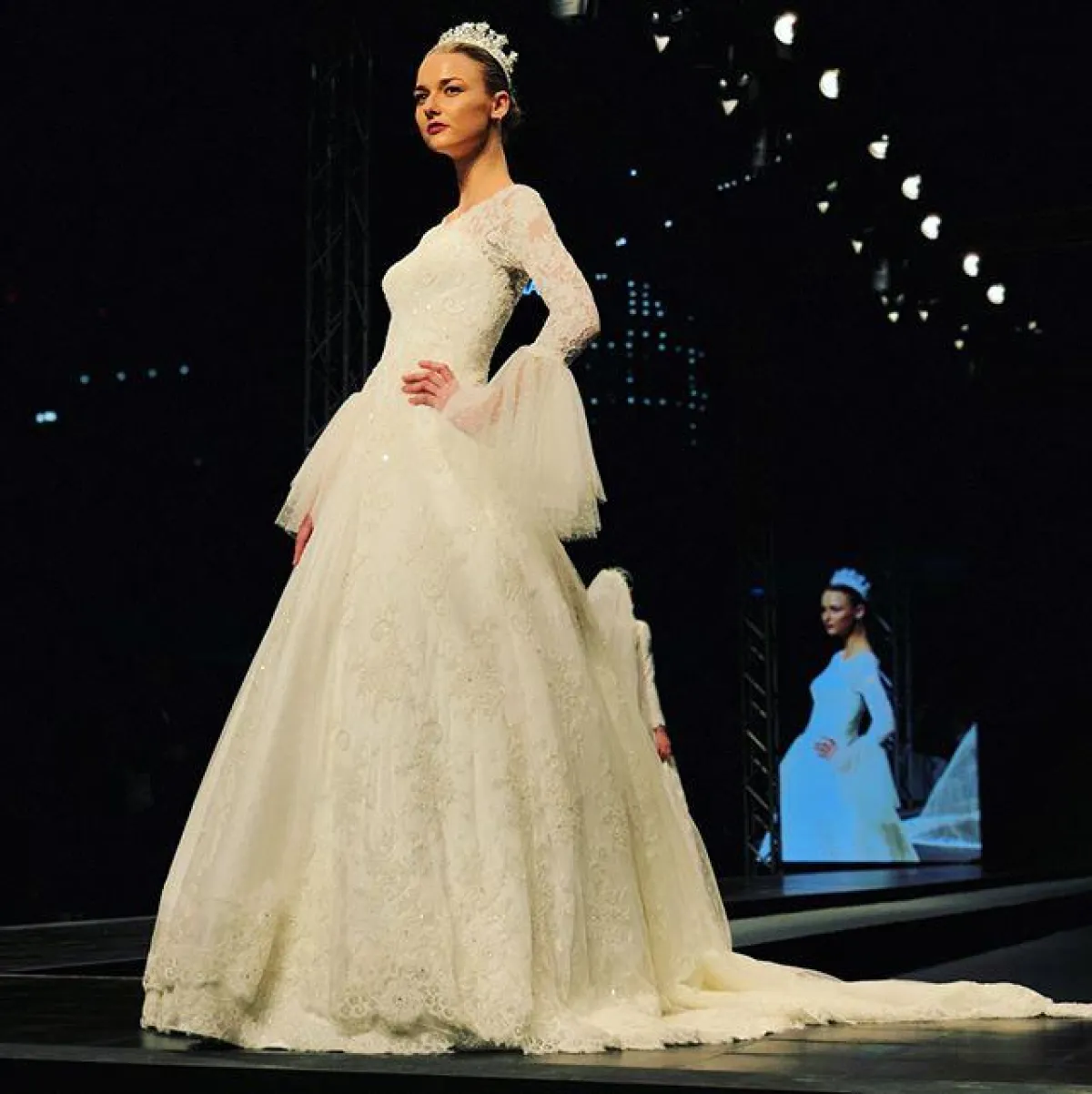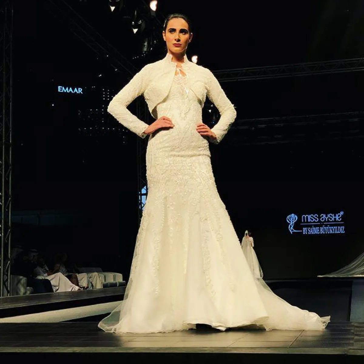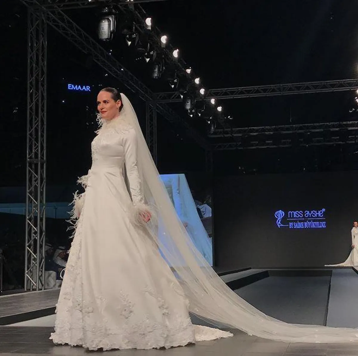 لم ينس منظمو أسبوع الموضة المحتشمة في دبي، تقديم مجموعة من فساتين الزفاف الراقية والمحتشمة في نفس الوقت، وقع الاختيار على مجموعة Miss Ayshe مع 8 فساتين بتصاميم مختلفة.