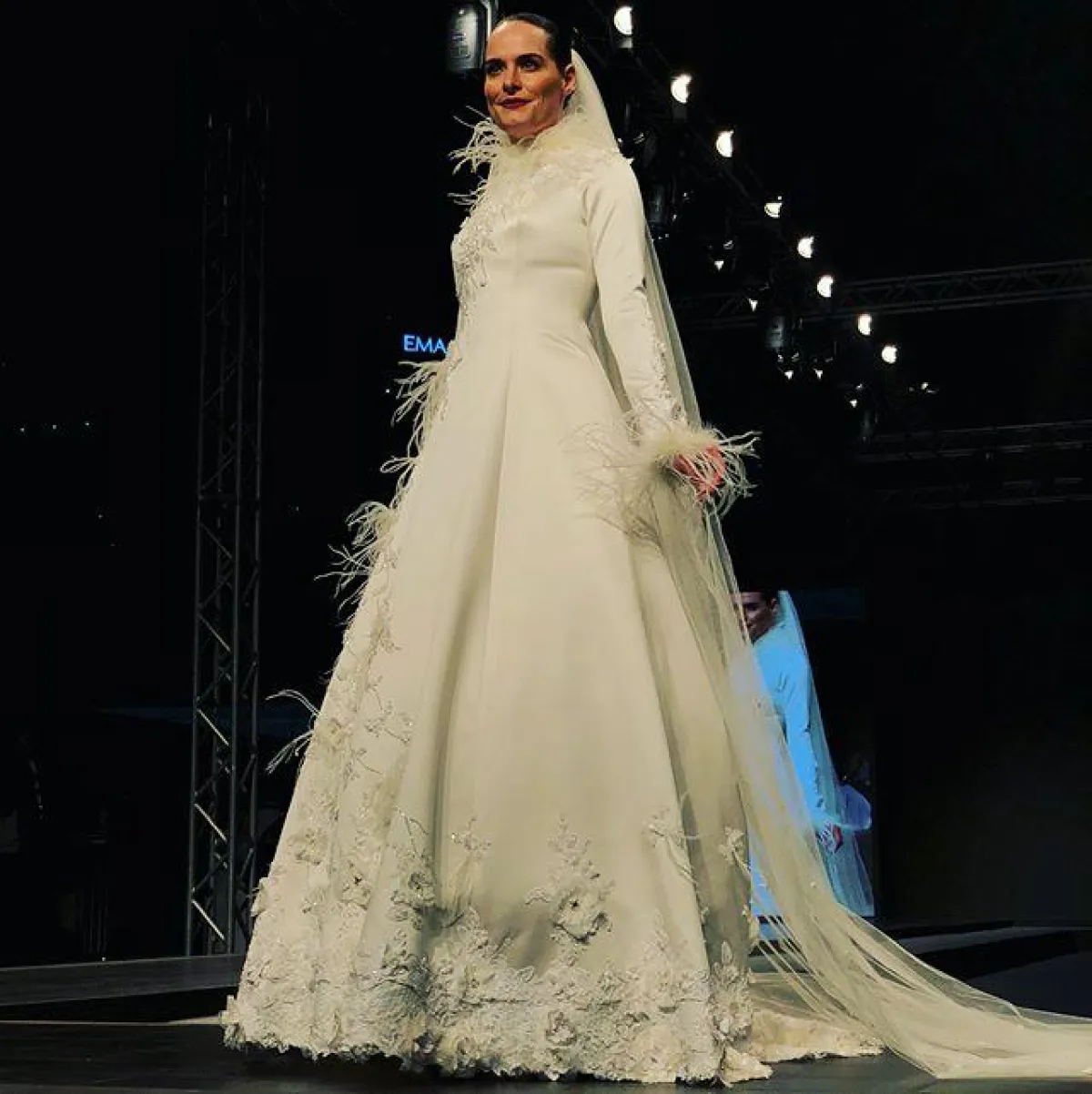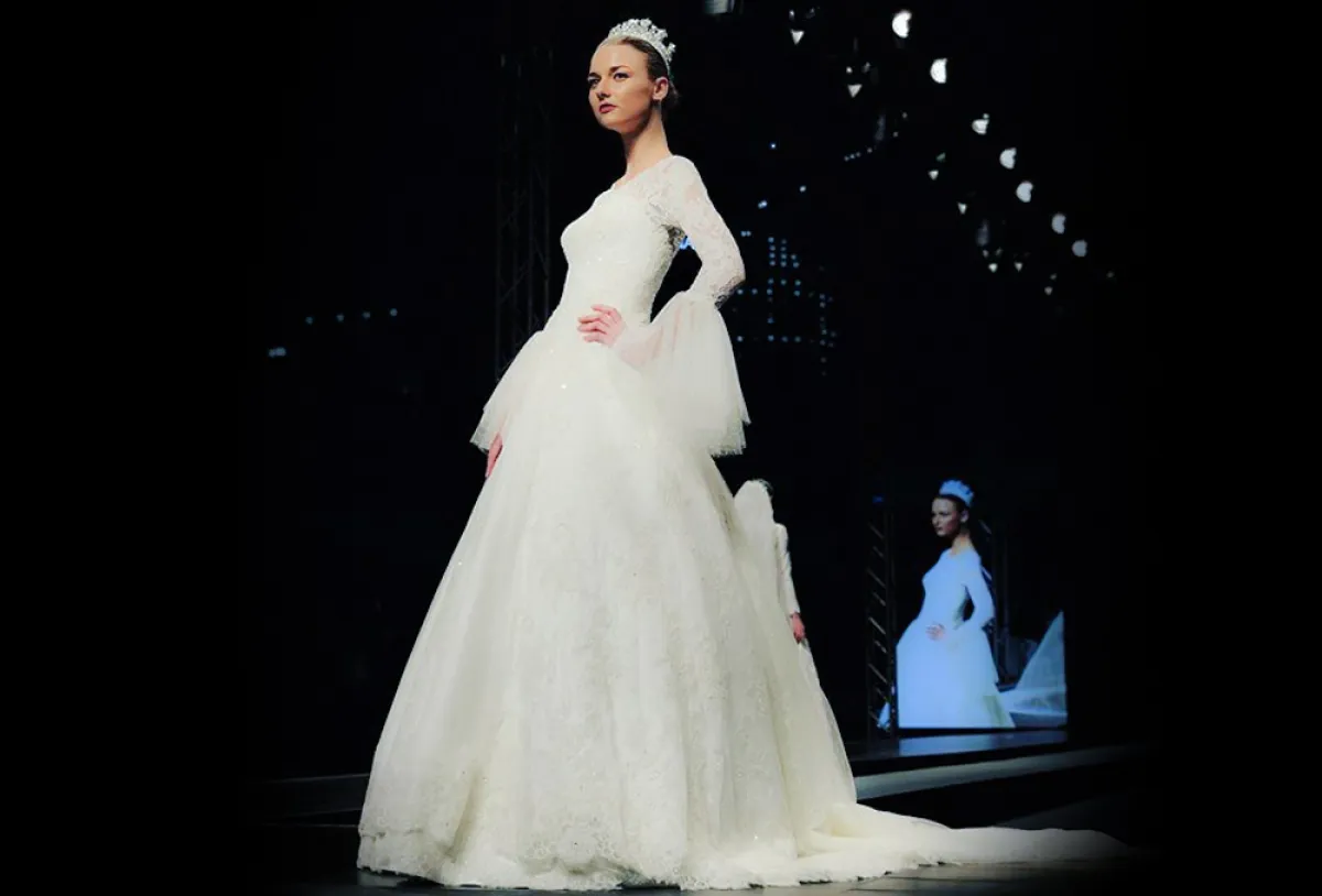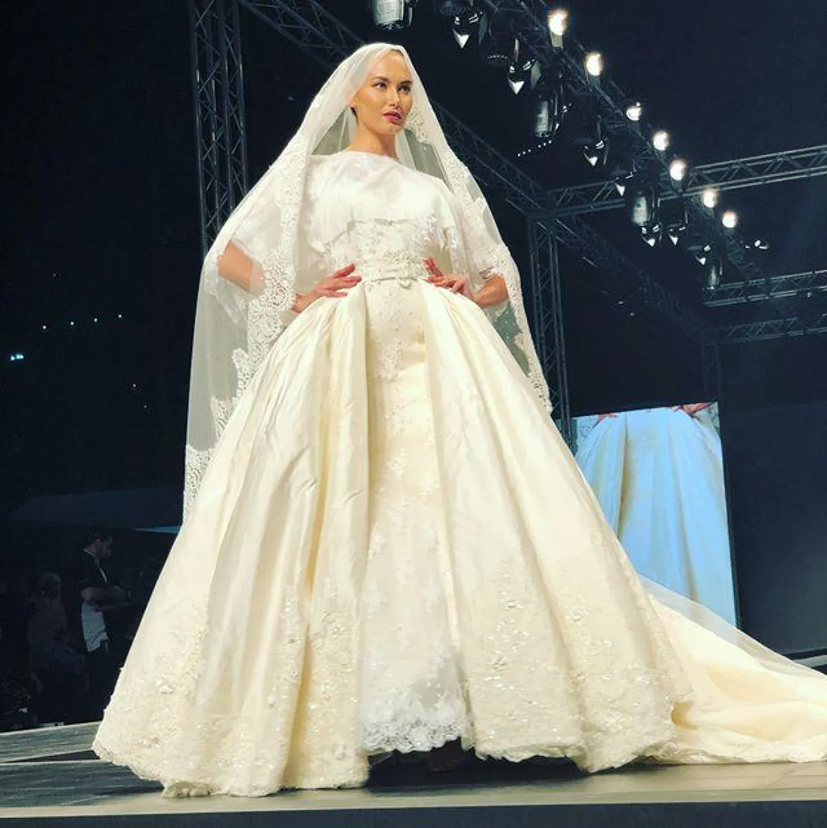 لم ينس منظمو أسبوع الموضة المحتشمة في دبي، تقديم مجموعة من فساتين الزفاف الراقية والمحتشمة في نفس الوقت، وقع الاختيار على مجموعة Miss Ayshe مع 8 فساتين بتصاميم مختلفة.