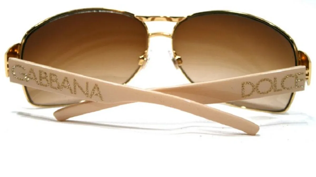 نظَّارة "دولتشي آند غابانا" الذهبيَّة محوطة بإطار ذهبي، مع عدستين بُنيَّتي اللون. وقد نُقشت حروف اسم الشركة بحبات الماس الصغيرة عليها، ما يُبرِّر ثمنها المُقدَّر بـ380.000 دولار أمريكي.
